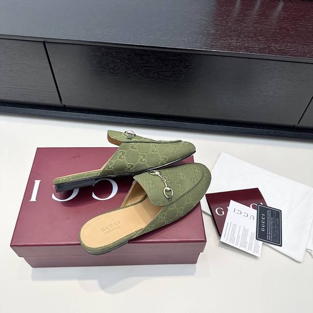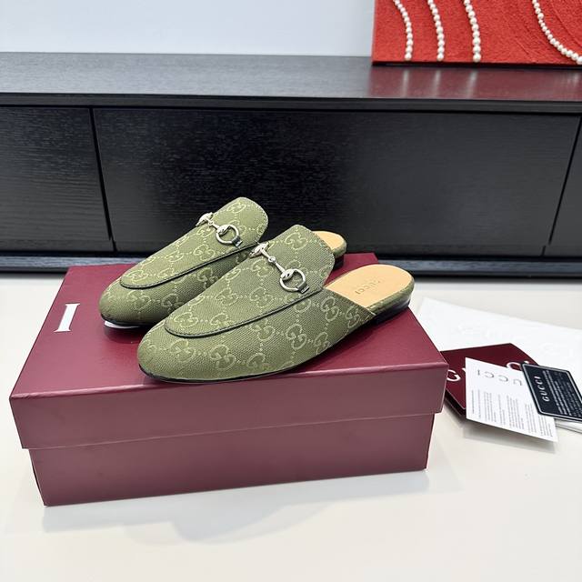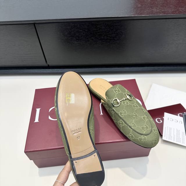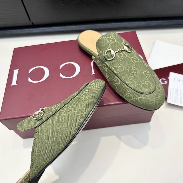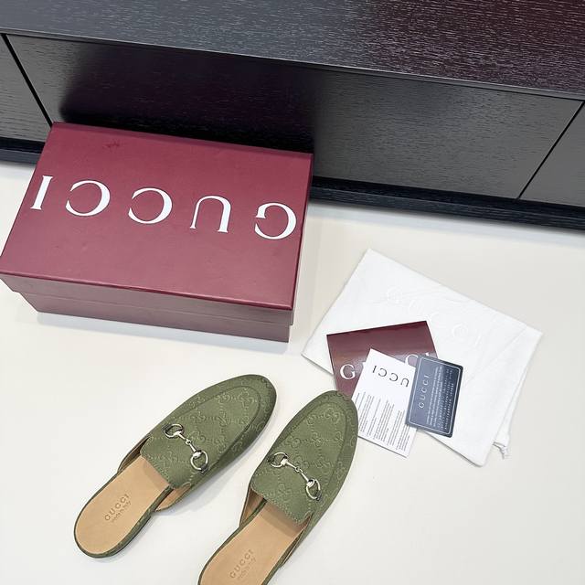 Gucci古奇新款 G家双G字母暗花一脚蹬单鞋 经典马衔扣乐福鞋 穆勒拖鞋 半拖