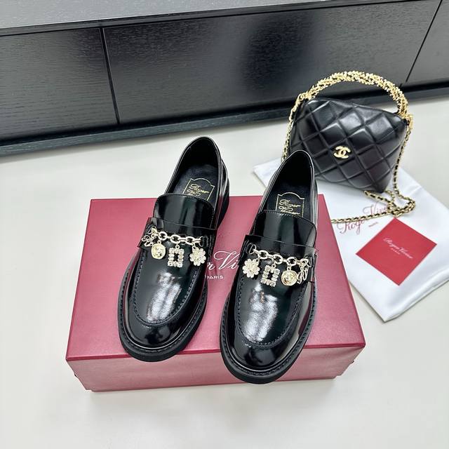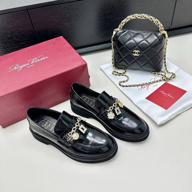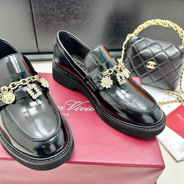 代购版 Rv25年Viv'rangers系列 水晶钻扣乐福鞋 鞋面采用软皮革 十橡胶厚底搭配经典钻扣,时髦摩登感拉满,整体脚感超轻且舒适度极好,春夏Ootd必备