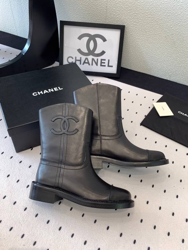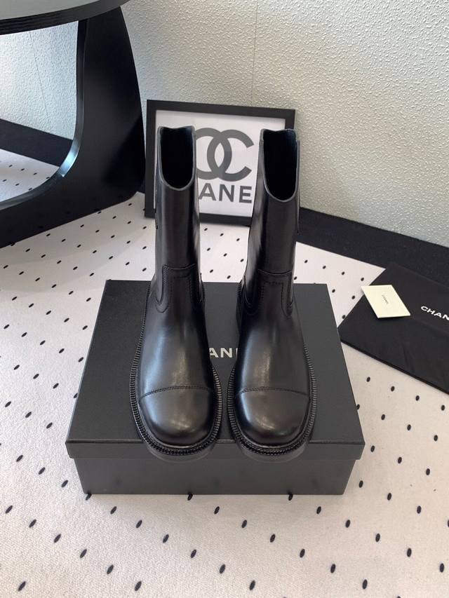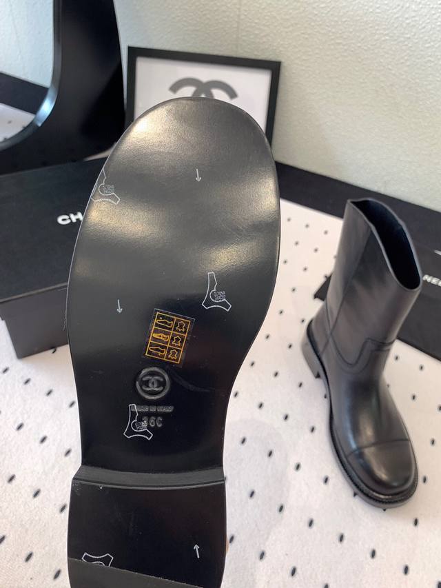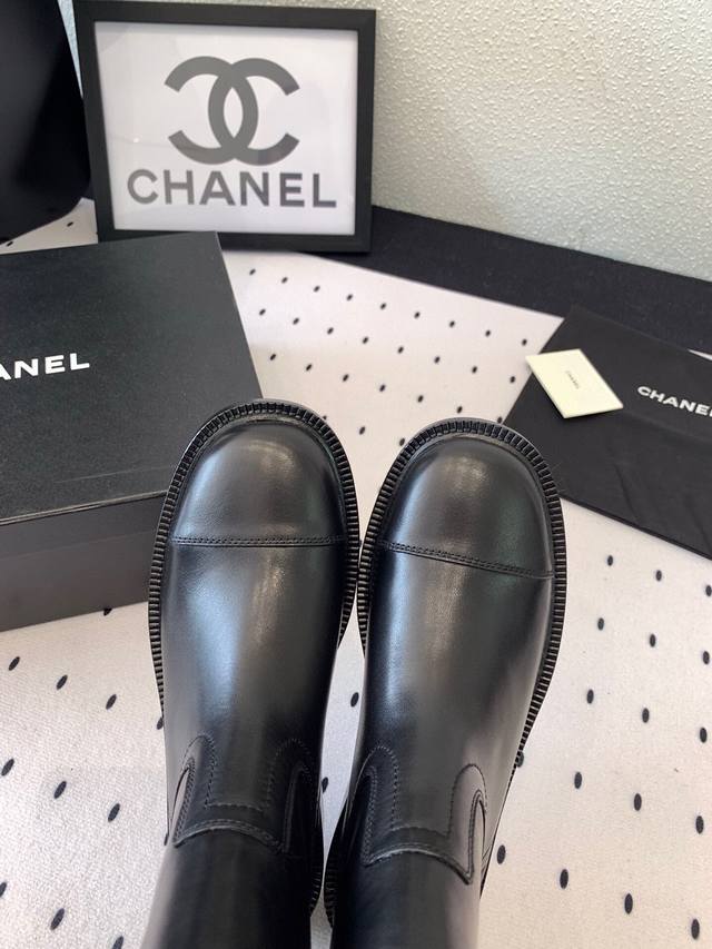 代购级别 Chanel新款经典大双C骑士靴 永恒的经典鞋柜里常青的系列单品 具有名媛气质 又带着一丝不经意的小复古 内里进口丝绸羊皮 意大利真皮大底 跟高:3C