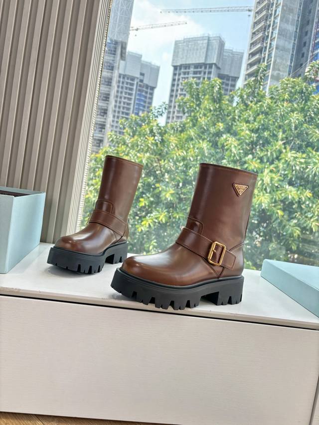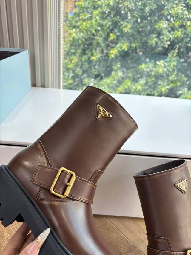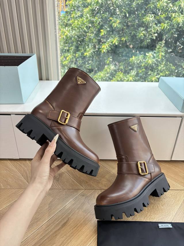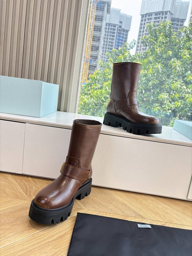 代购级别G741所见即所得Prad*普拉达2025秋冬爆款经典款骑士靴系列 这款上脚超好看.而且可以拉长腿型