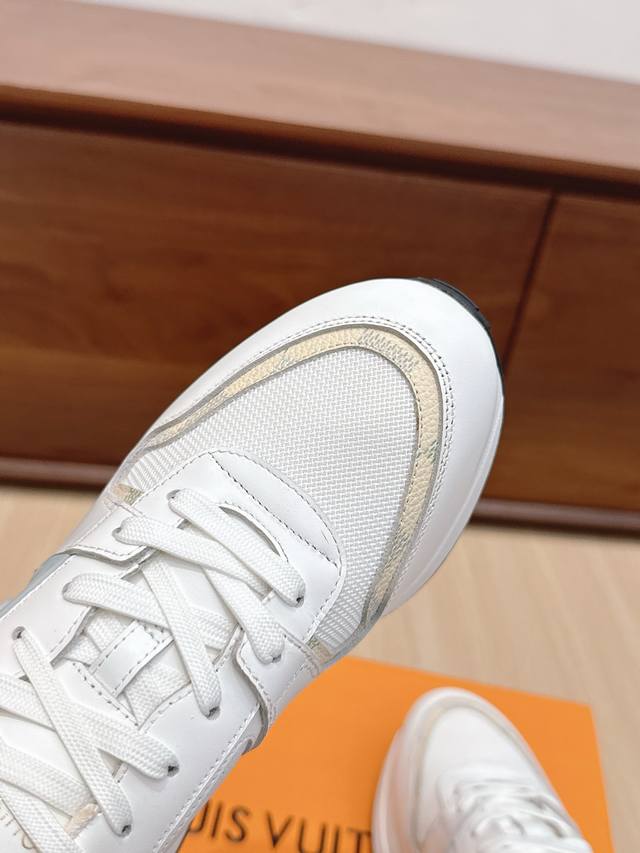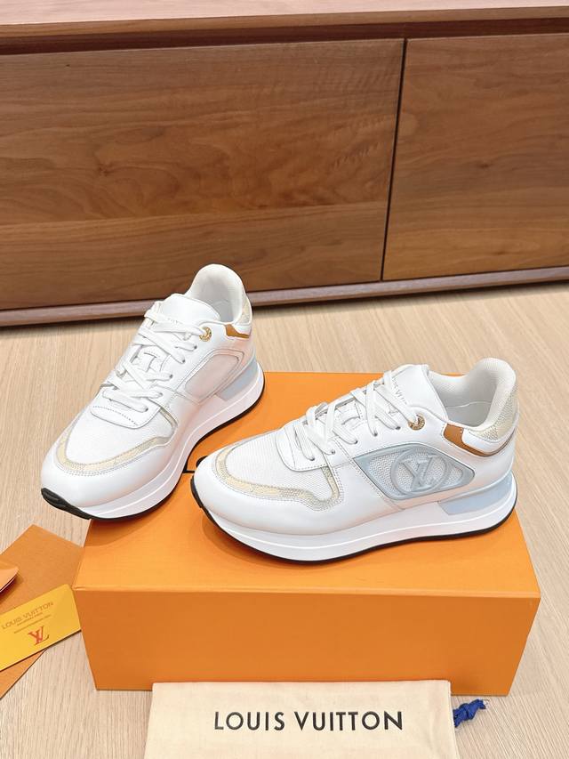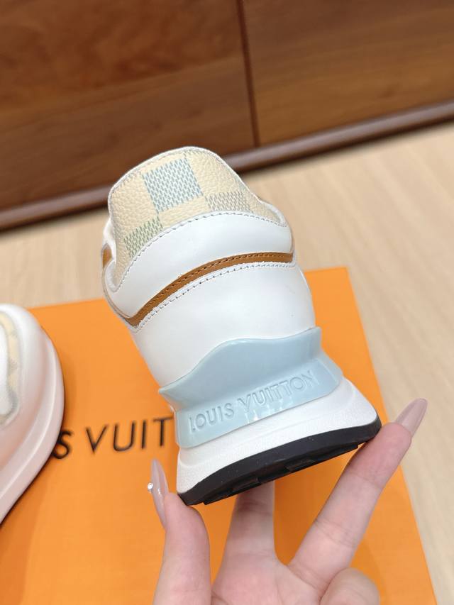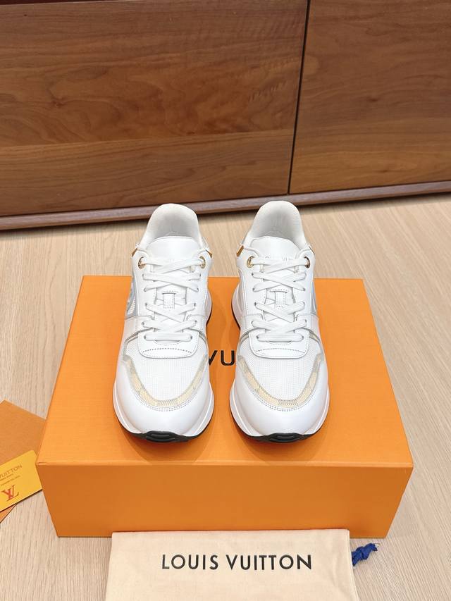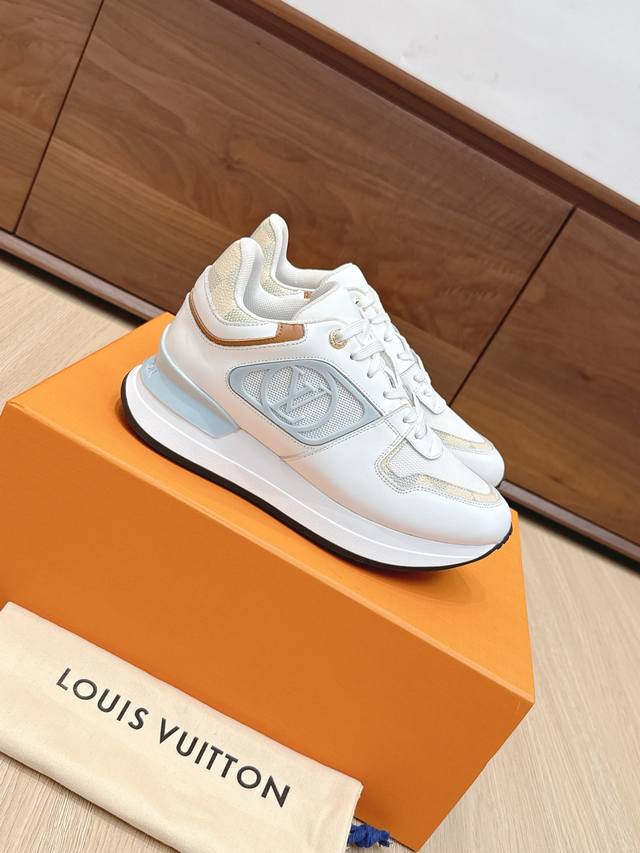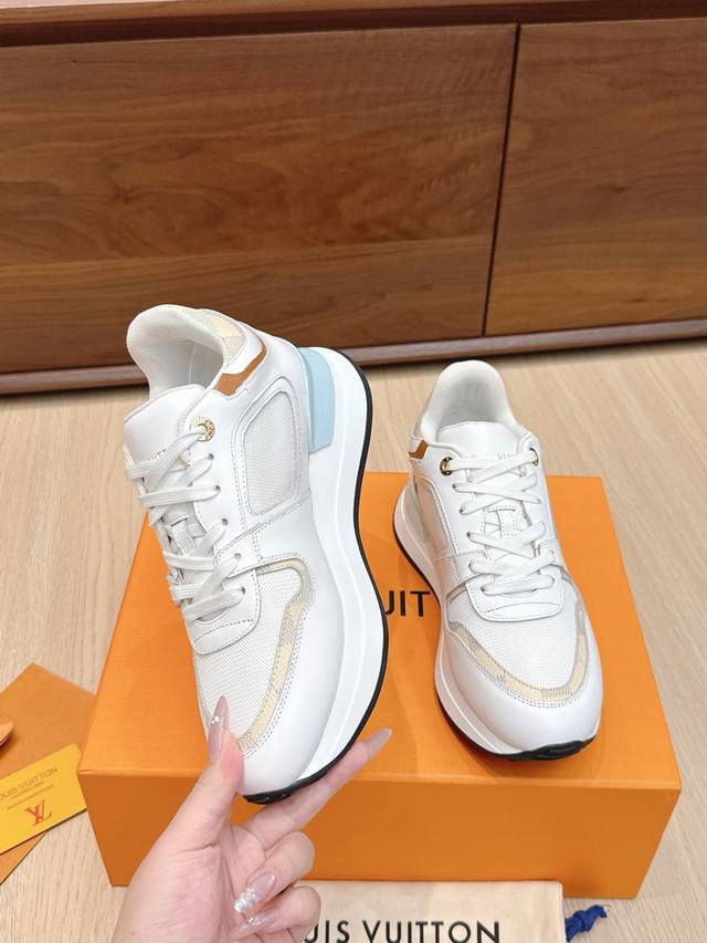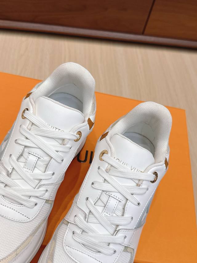 路易威登#经典内增高运动鞋 运动鞋中的纯爱战士 逛街时初印象就觉得鞋身纯白配上淡淡的金色,低调中显得很纯净,试穿后入这款鞋的点在于偷偷增高6厘米左右置走路也轻便~求舒适度的集美入股不亏 春夏两个新配色,真的好美啊! Size:35-39 40 41定做不退换