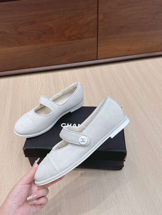 Chanel 香奈儿秋冬新款羊毛玛丽珍平底鞋