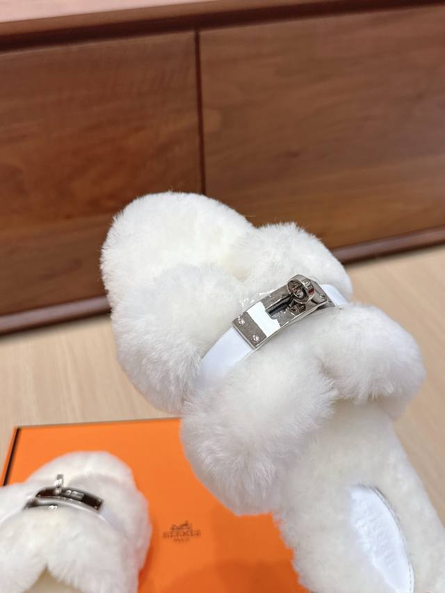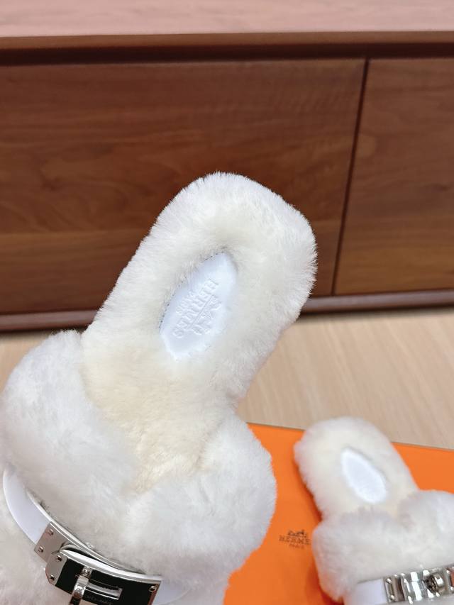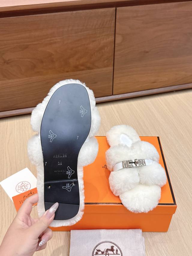 代购级 Hermes Oran毛毛拖 经典羊皮毛一体毛毛拖鞋,温婉的气质,柔软的触感,好看又保暖 皮毛一体材质,鞋底意大利进口牛皮! Size 35-42