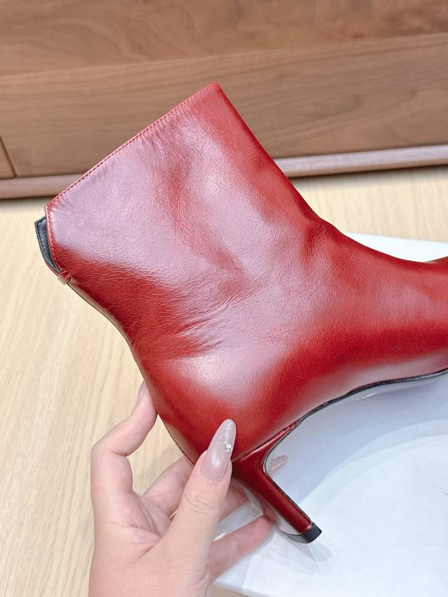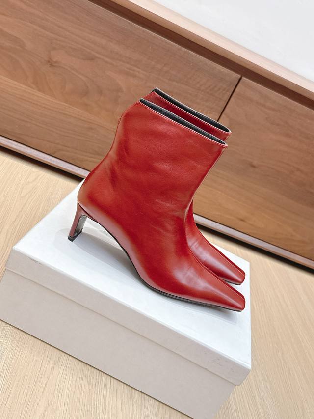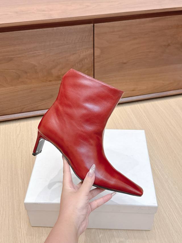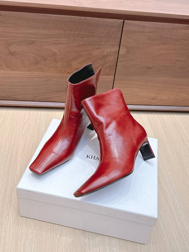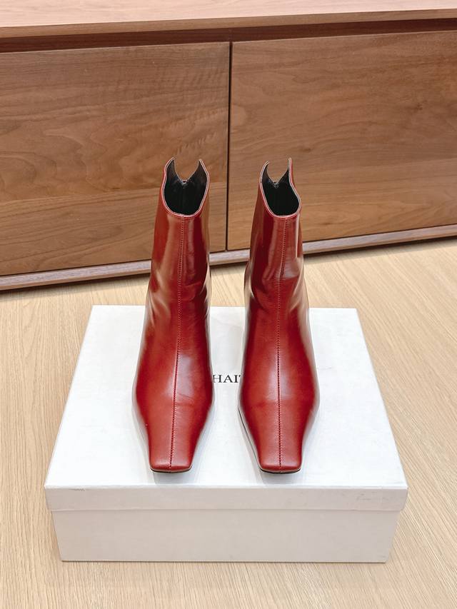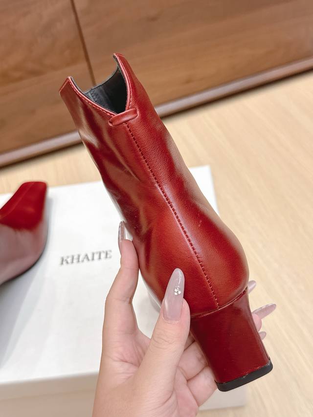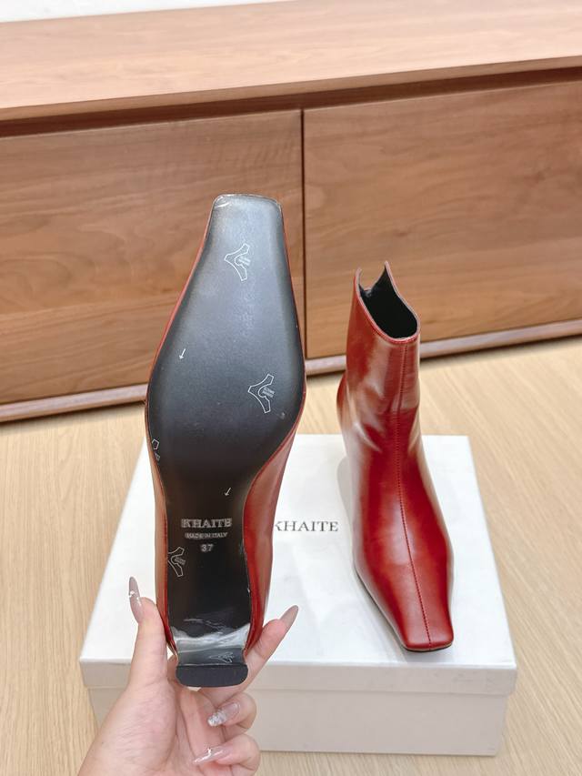 Khaite 24Ss秋冬新品平跟小方头裸靴侧拉链短靴!