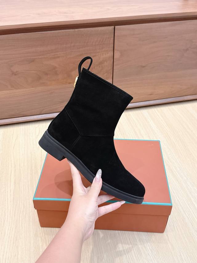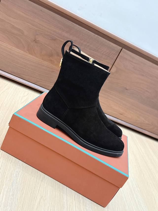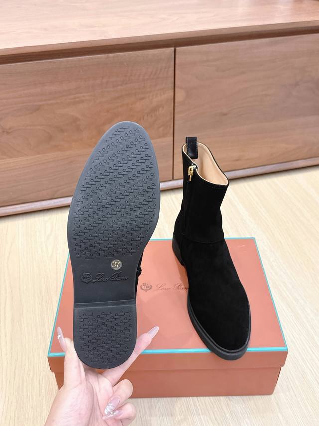 Loro Pian*25S春夏新款 极简复古侧拉链平底短靴