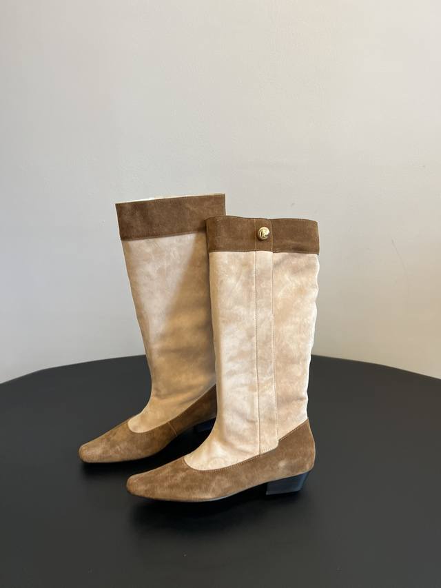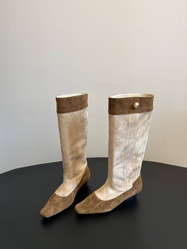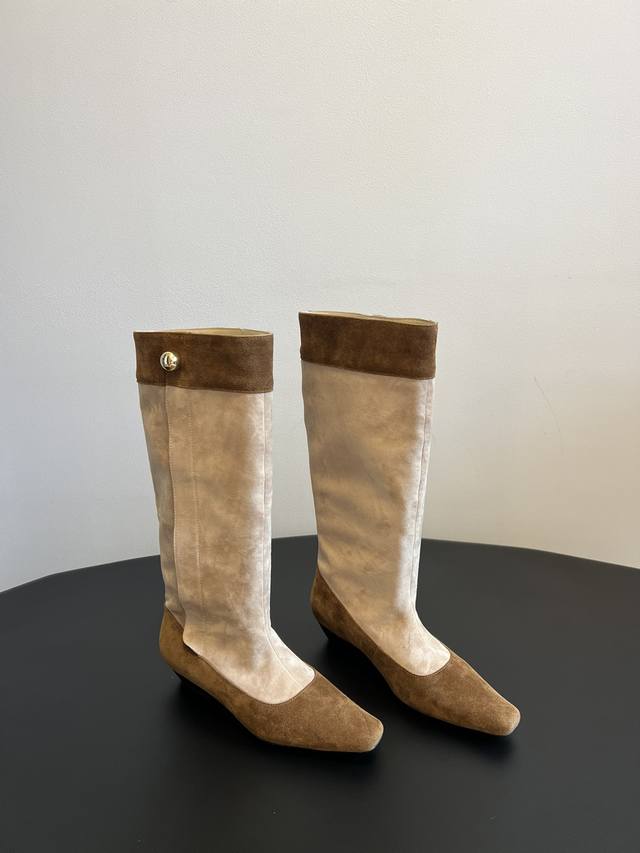 代购级 Odt*Ss 新款矮根拼接骑士长靴