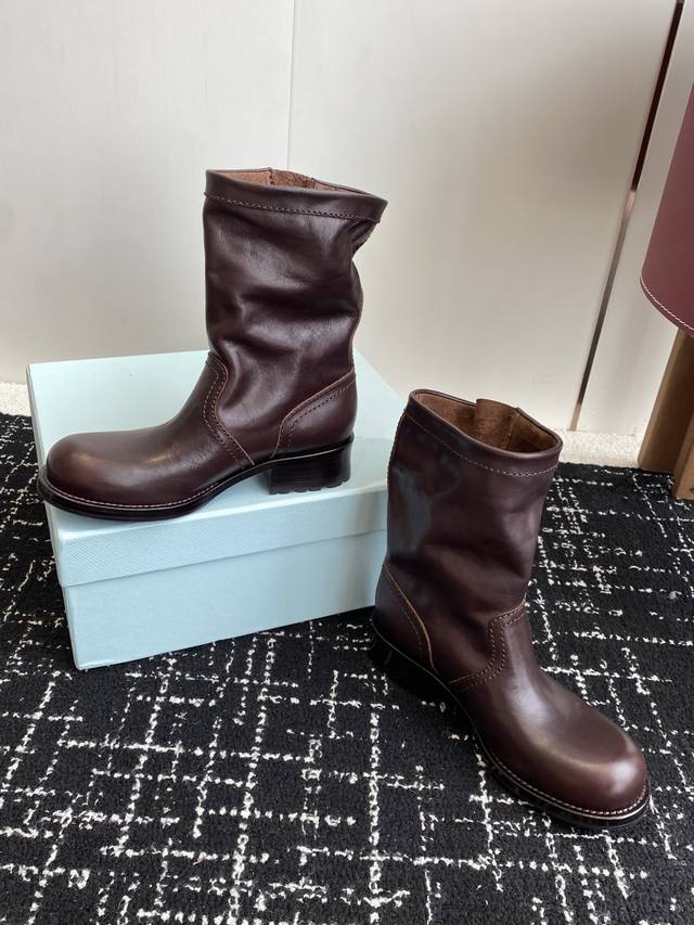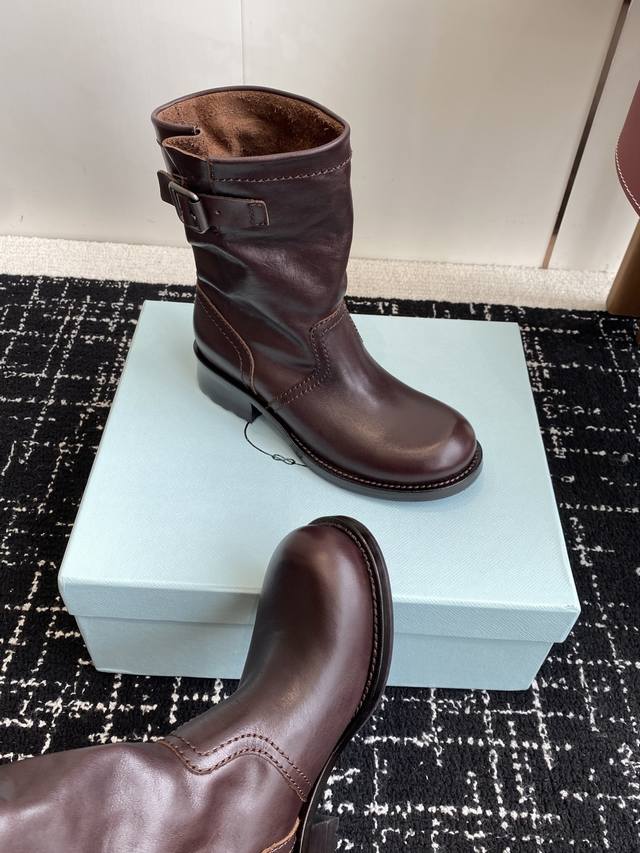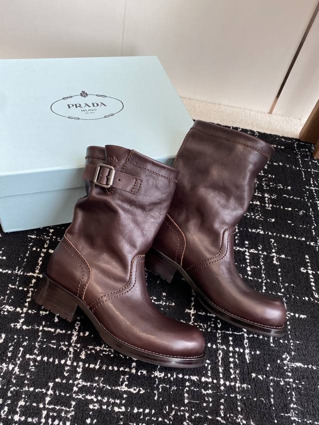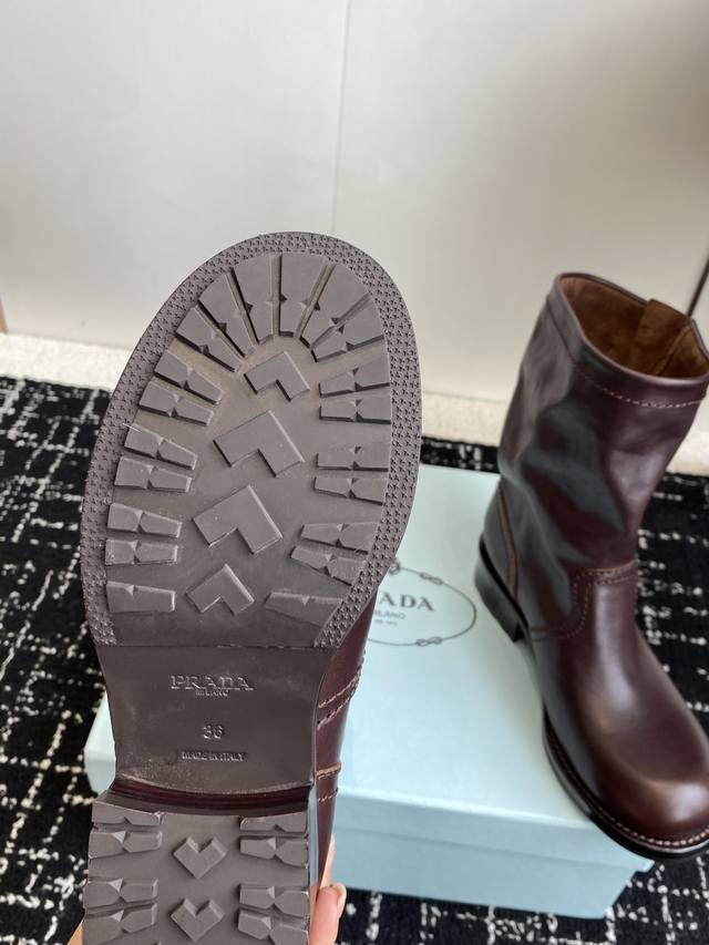 Prada普拉达 25Ss 秋冬 复古西部牛仔靴
