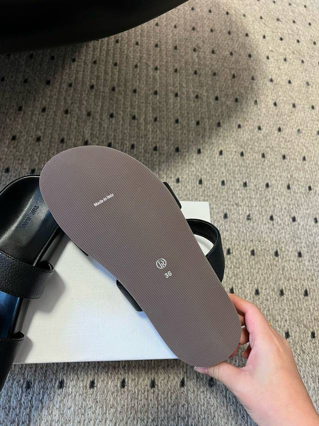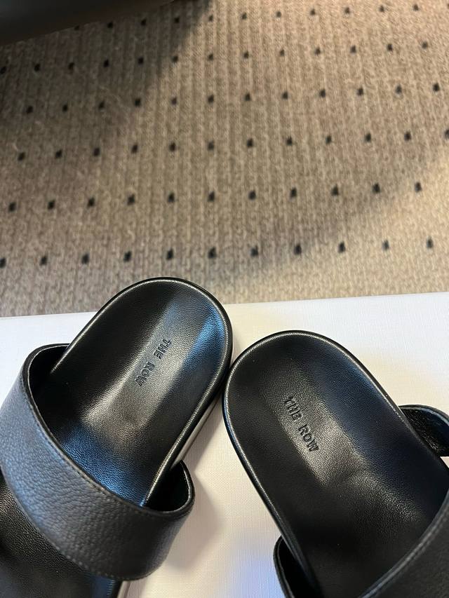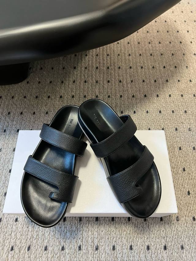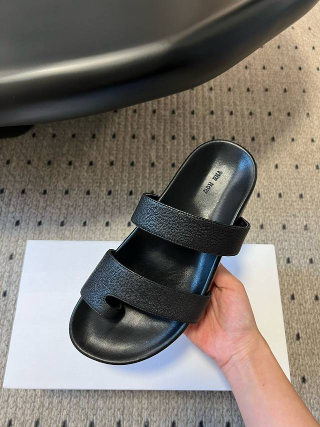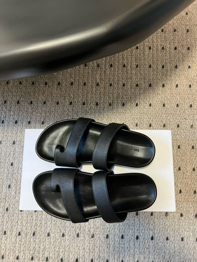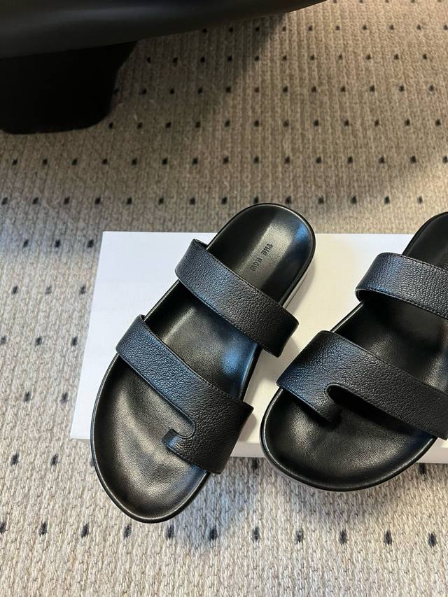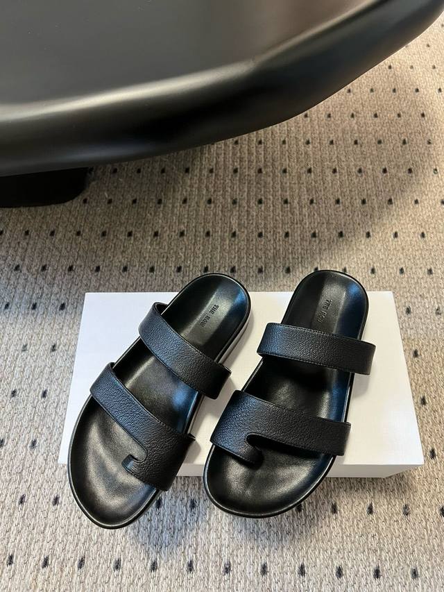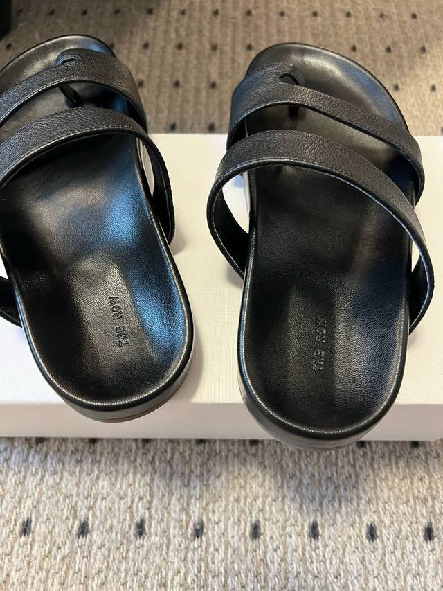 The Row 25Ss 春夏新款简易皱面简易平底 夹脚拖鞋!