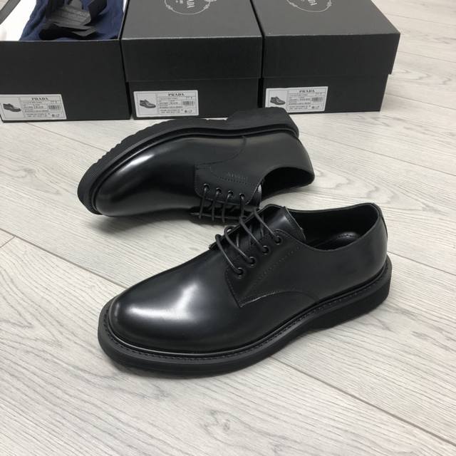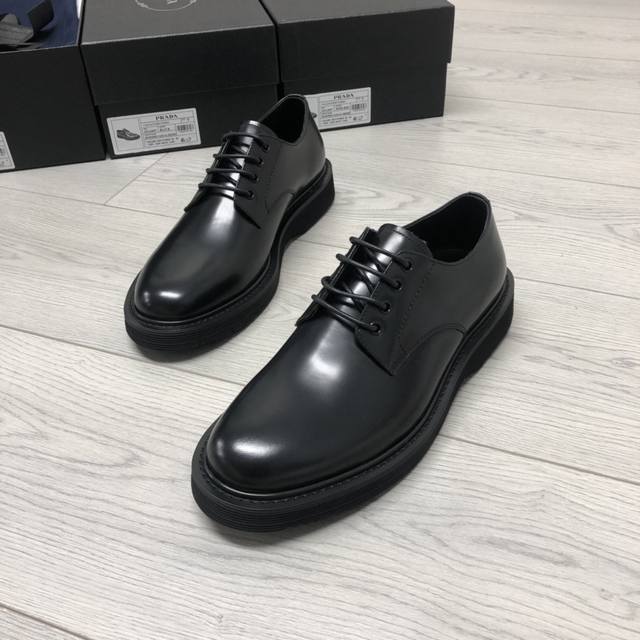 / 光面款Prad*德比男鞋到货 专柜品质 手工擦色开边珠牛皮面 内里垫脚全牛皮 耐磨防滑橡胶发泡大底 轻便舒适 上脚霸气百搭 J皮鞋码数:39 40 41 42