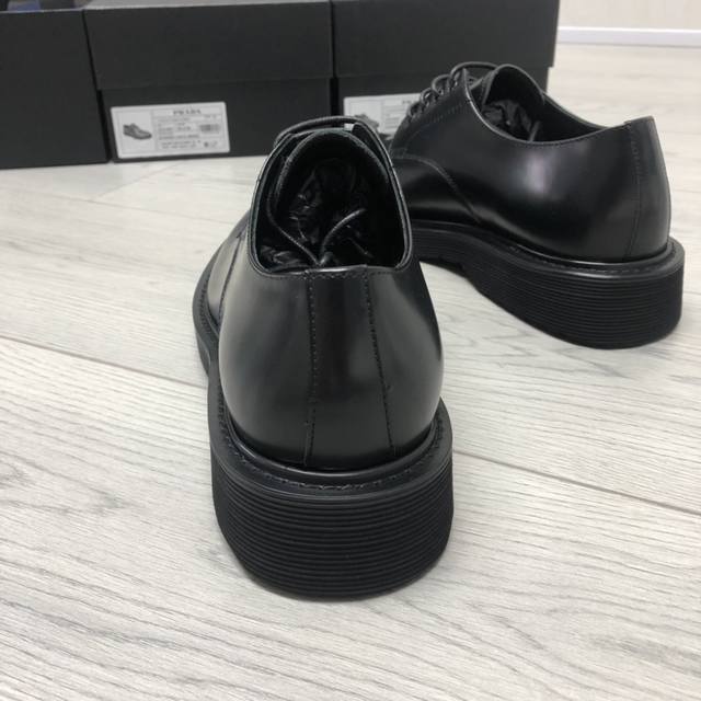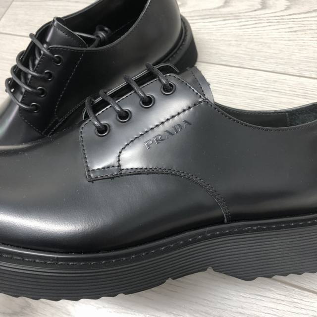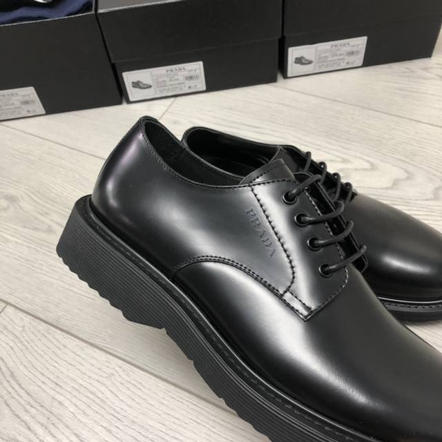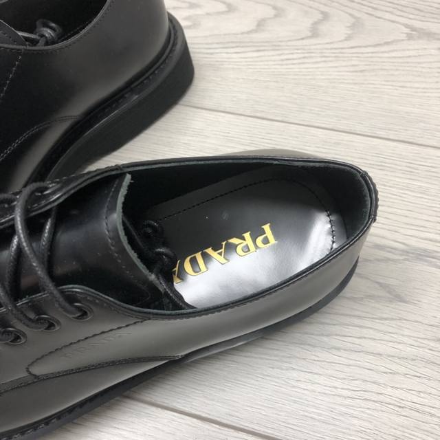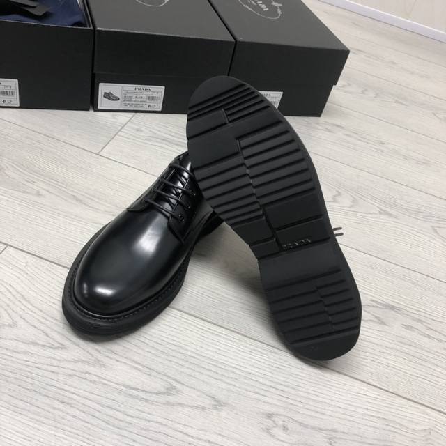 光面款Prad*德比男鞋到货 专柜品质 手工擦色开边珠牛皮面 内里垫脚全牛皮 耐磨防滑橡胶发泡大底 轻便舒适 上脚霸气百搭