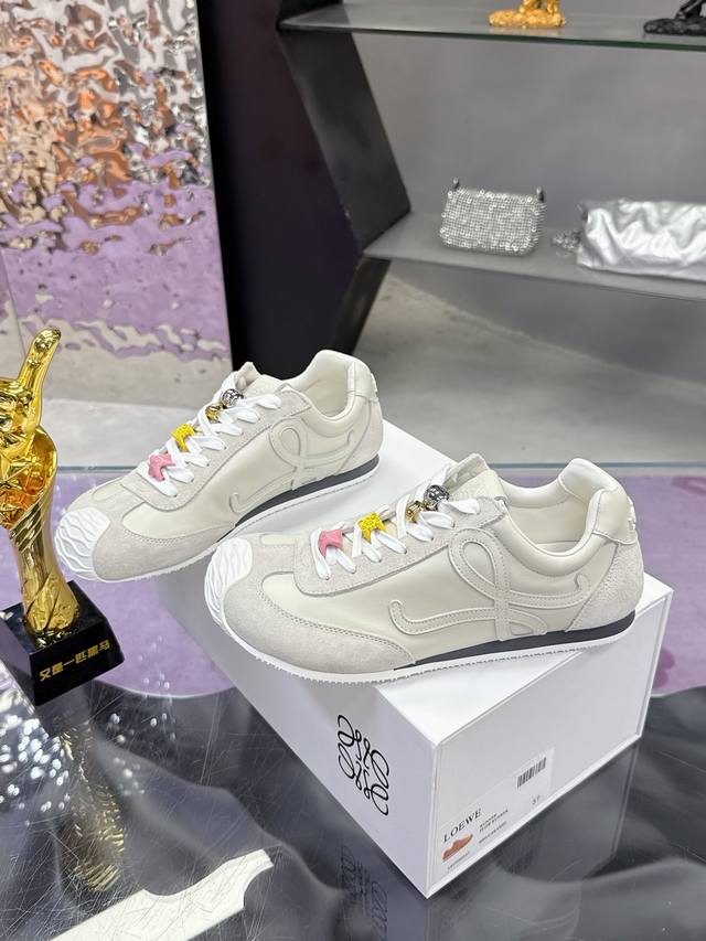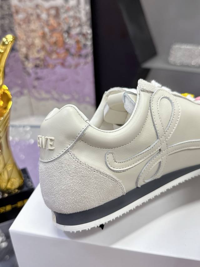 火爆情侣款 罗意威Loewe 2025 Ballet Runner2.0 新款芭蕾舞鞋 超级棒 不对称鞋头造型,作为Loewe的标志性设计 超柔软,轻便且灵活的鞋底,新的波浪纹理橡胶外底,延伸至鞋头,升级的柔软皮革内衬和鞋床,提供最大舒适感,后跟有3D注塑橡胶Loewe徽标 全开模对版材质