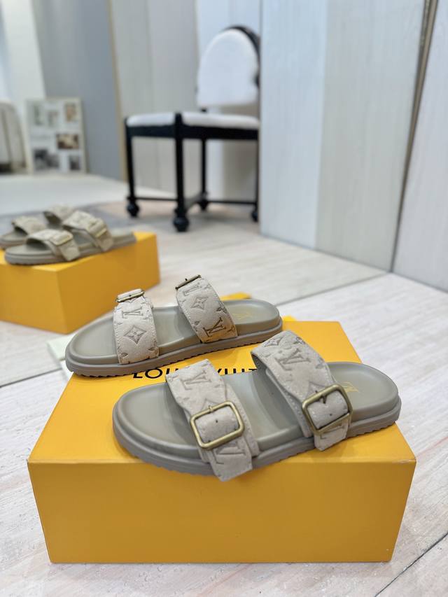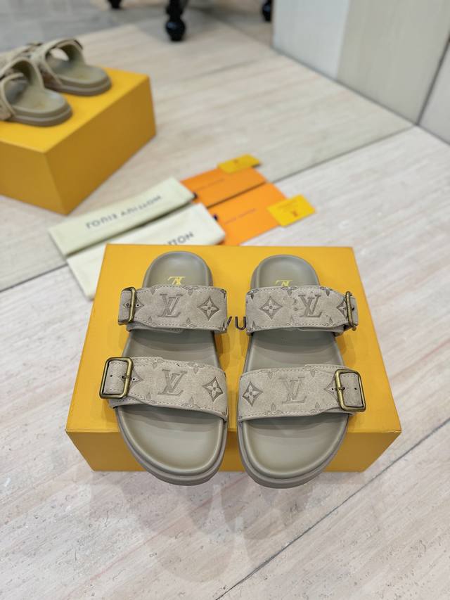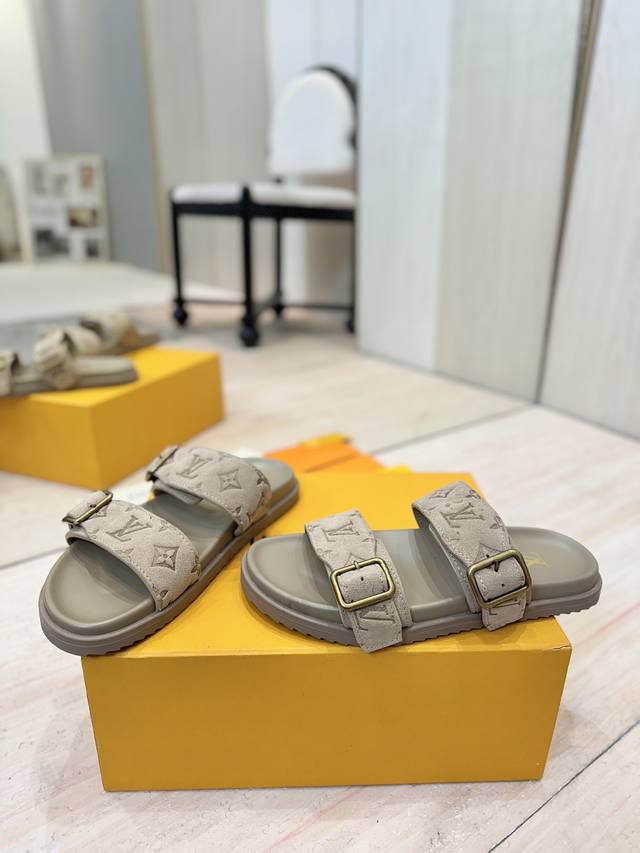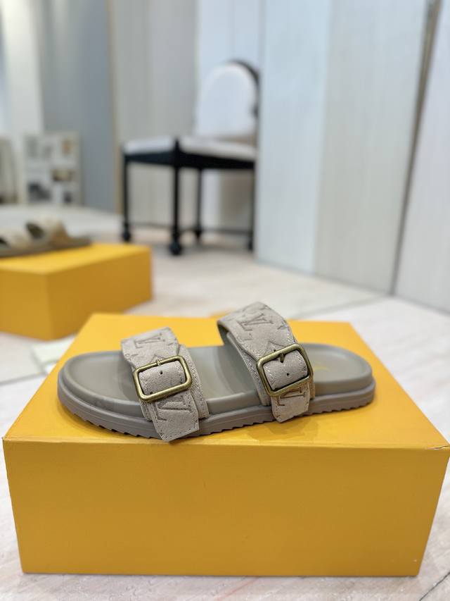 专柜主打经典 双扣带魔术贴压花系列休闲拖鞋 硬货上新