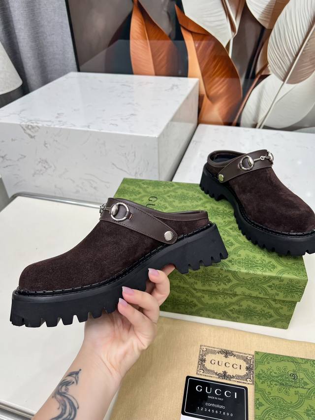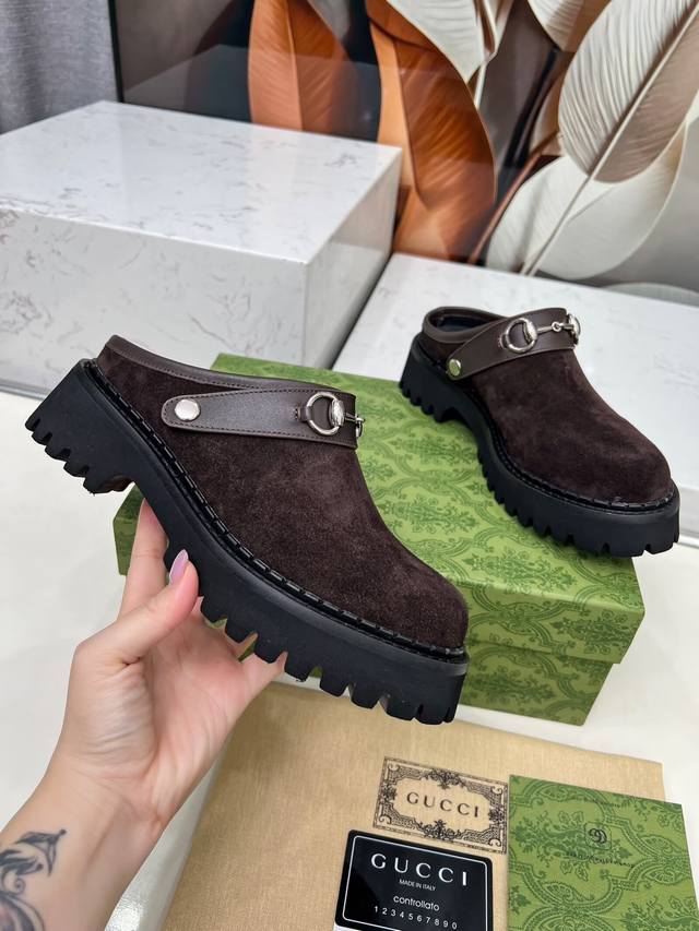 出厂价Pp: 女装女鞋 运动原单古驰Gucci英伦风时尚拖鞋,懒人设计后绊厚底增高 ,后空造型若隐若现露出的脚踝,走路带风超飒爽,不挑年纪的风格、受众超广,