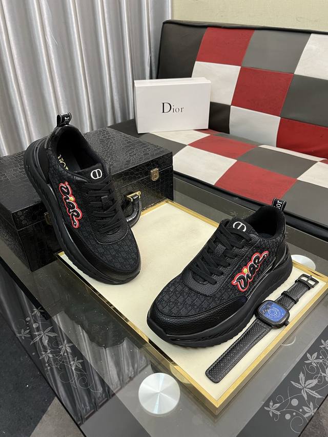 出厂价Pp: 迪奥 独特现代风运动鞋。专柜代购休闲皮鞋 意大利进口原版牛皮 牛里 拒绝脱色磨脚 鞋底:原厂特供原版底,超酷 系带走路都带风风格设计 超舒服耐磨原