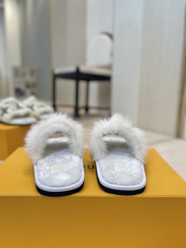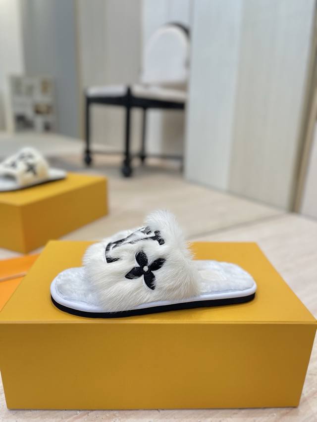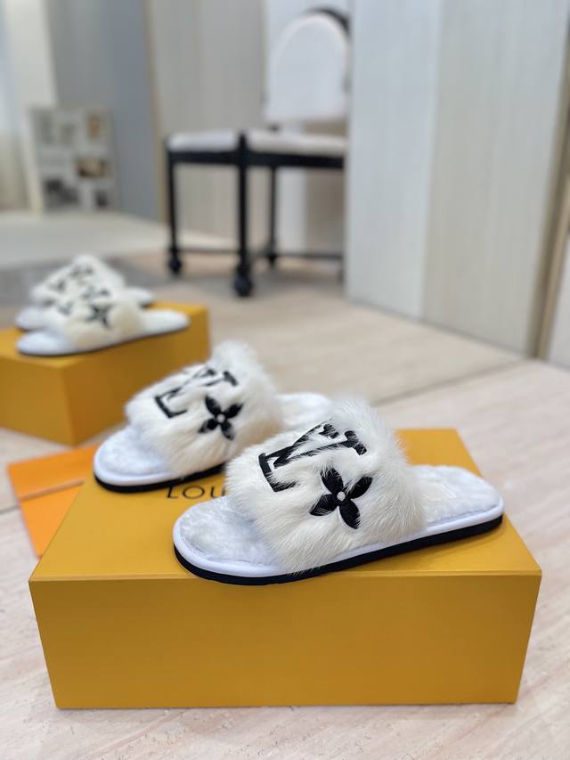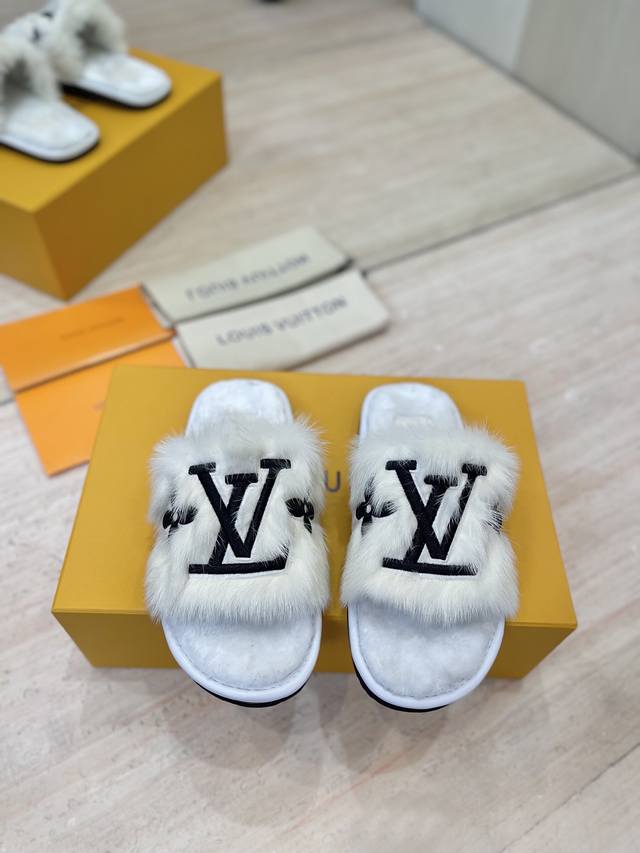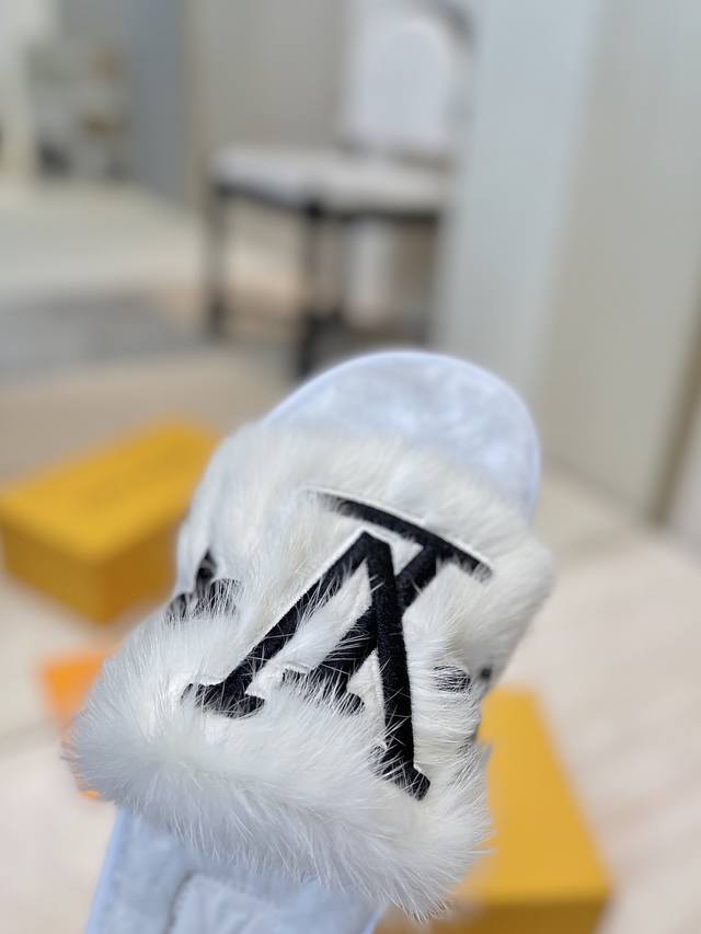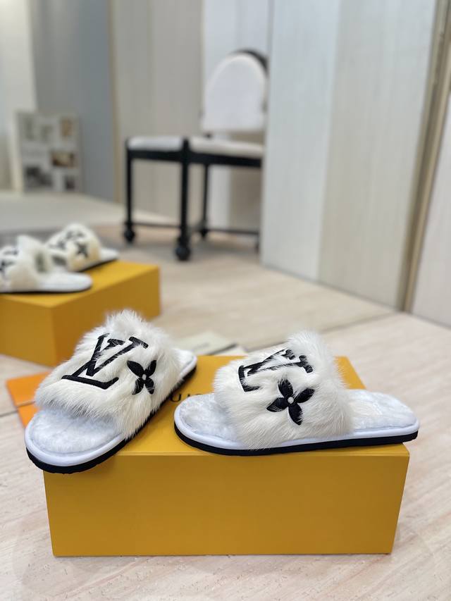 Louis *Uiton 2025S 新款水貂毛居家拖鞋