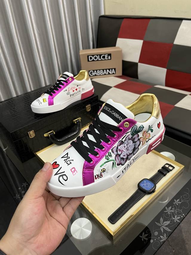 出厂价Pp: Dg最新爆款休闲鞋,鞋舌带有品牌标志性细节,丝绸牛皮与牛反绒相结合提升格调。时尚百搭,可为各式造型增光添彩。塑造独具动感活力与摩登气息的精致设计,尽显现代优雅格调。 Size:35-46