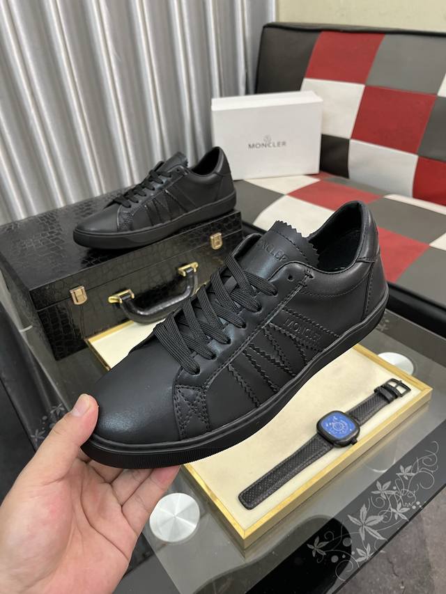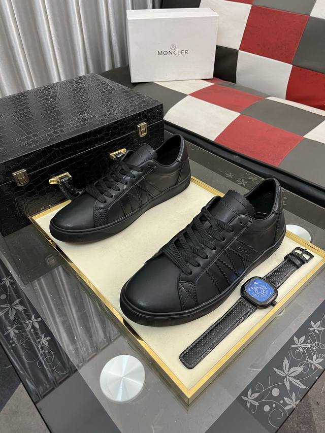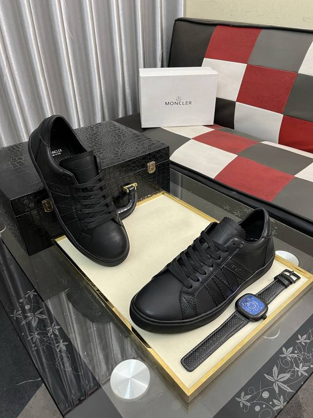 出厂价Pp: Moncler 蒙口、官网同款 高品质男鞋 材料:定制小牛皮 网布透气内里真皮鞋垫 原版开模大底款式类型:男士休闲运动鞋 系带款男鞋系列 欧美潮流风格 随意搭配 脚感舒适、标准码:男码38-463色可选
