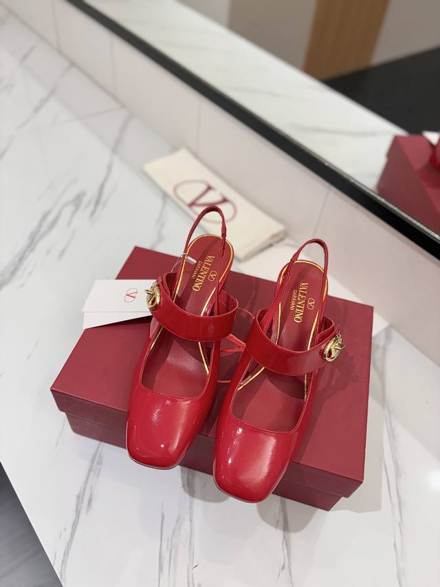 出厂价Pp: Valentino华伦天奴 最火爆新品玛丽珍融入粗跟设计简约舒适之余,拉长腿部线条,饰品以金色Vlogo旋钮,演绎出时髦新高度完美复刻