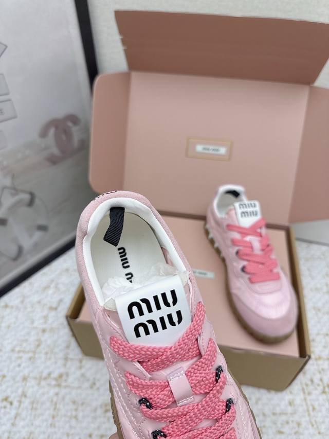 Miu Miu 25Ss 春夏新款走秀Miumiu 德训 休闲鞋秀场工艺来自Miu Miu系列的细节特写 新季的潮流此刻挚爱的概念 多元对撞 传达现代风格 怎么穿都好看今夏时髦精最爱 全套包装!