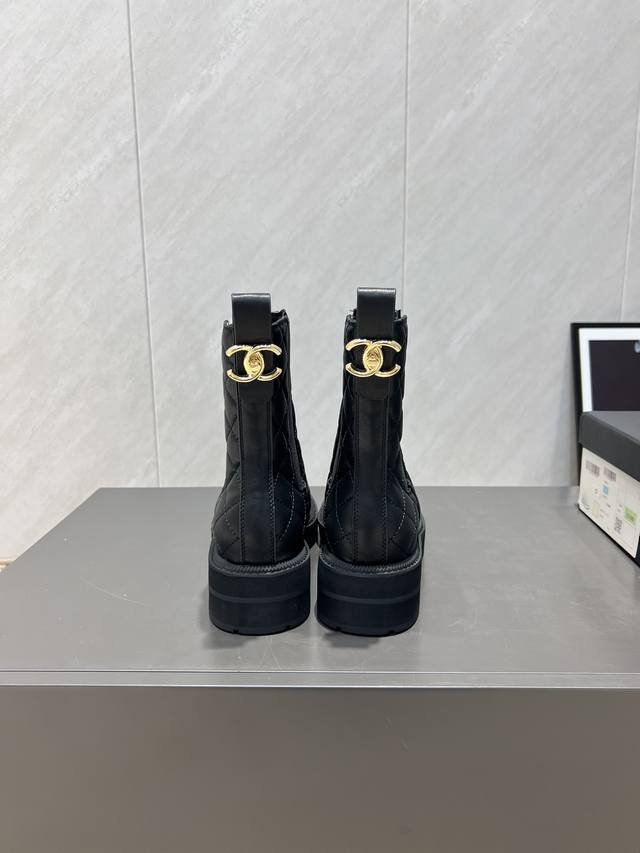 出厂: 独家顶级版本 Chane*香家2025Vs秋冬新款靴子系列 圆头电绣厚底短靴 新款上架这款厚底在欧美街拍中出境率超高,Ins也是火了一把,调鞋楦都调了一