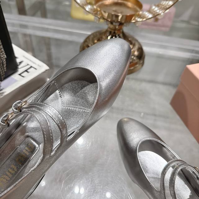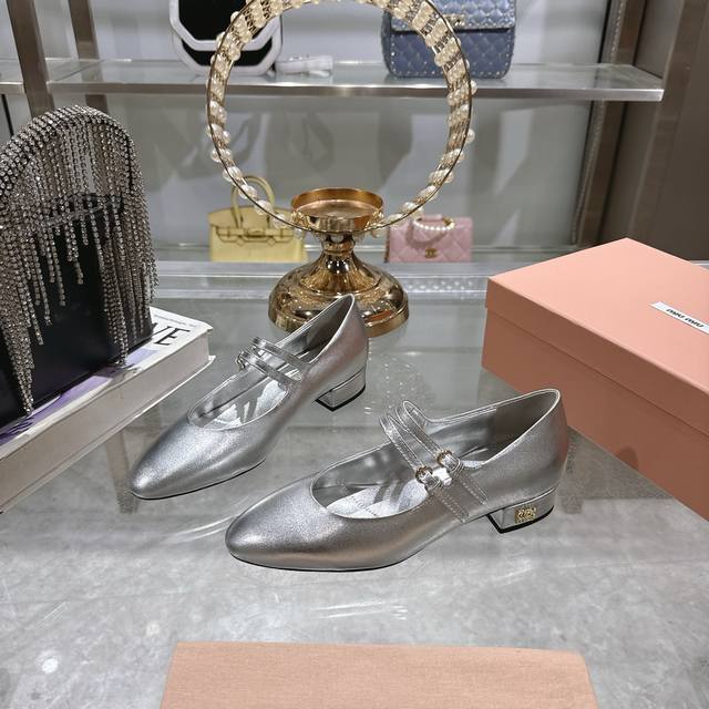 出厂 顶级品质Miumiu缪缪25秋冬走秀新款New Arrival~粗跟圆头玛丽珍珍珠双扣带单鞋!