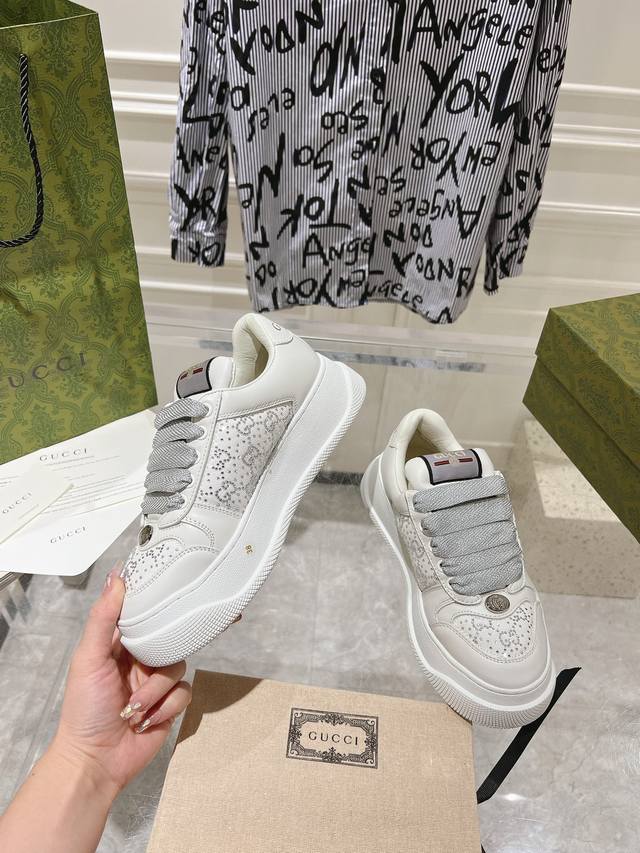 出厂 顶级版本 Gucci最新款胖嘟嘟厚底脏脏鞋~~情侣款休闲鞋,6Cm增高鞋~~