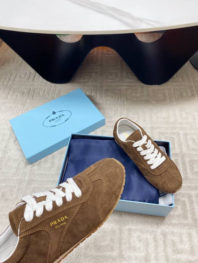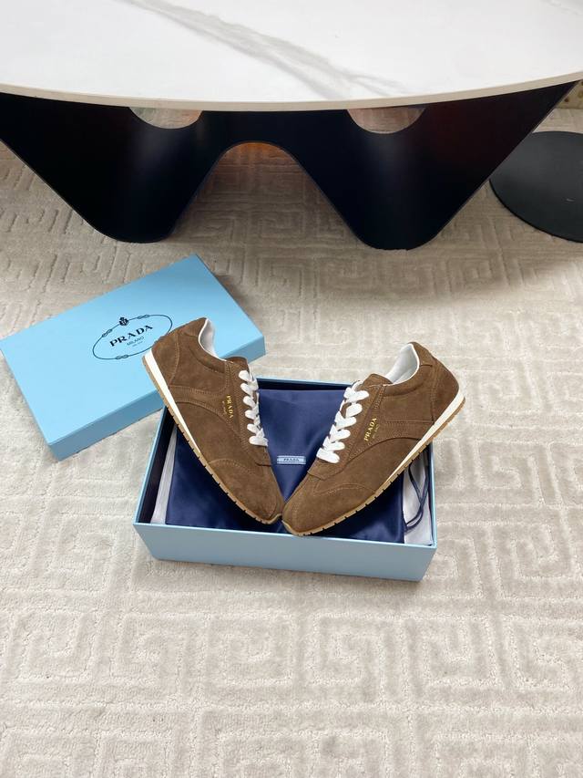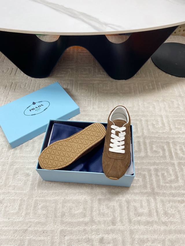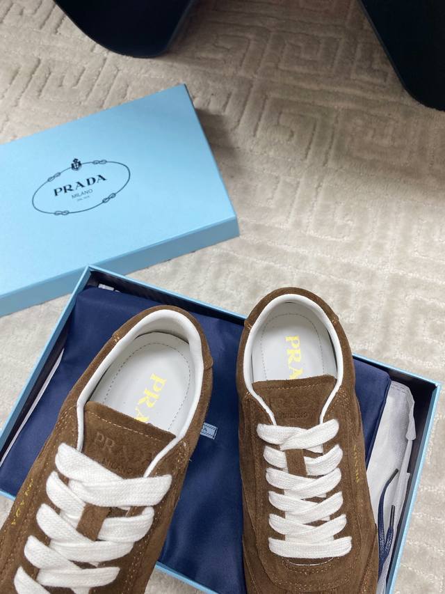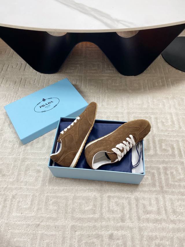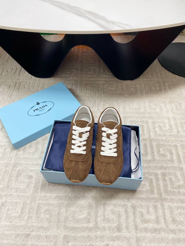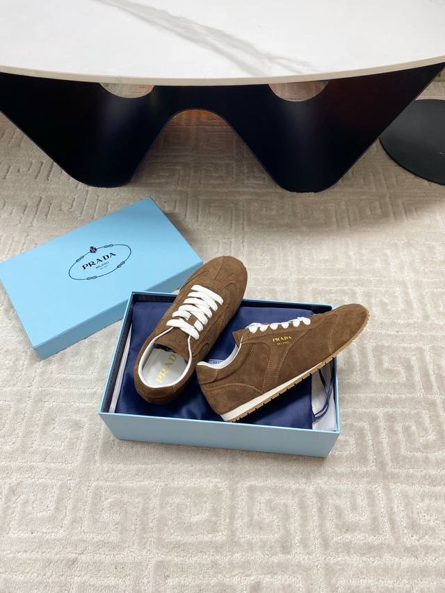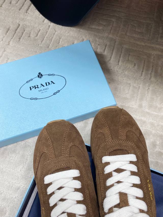 出厂 25Fw早秋新款Prada普拉达 绒面牛皮革运动鞋复古德训鞋系带休闲运动鞋