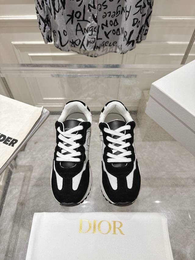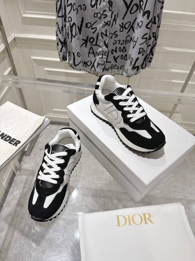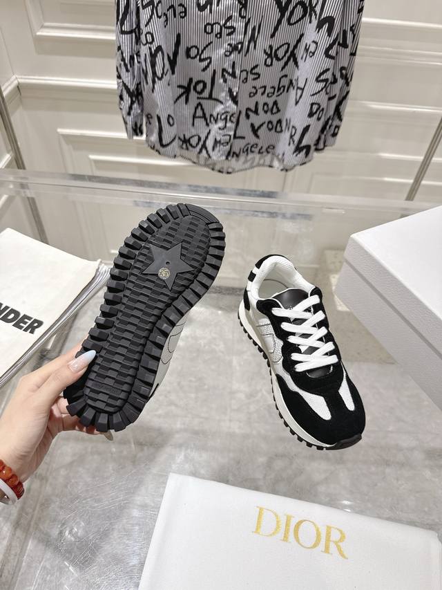 Dior 迪奥最新走秀款休闲阿甘鞋 运动鞋 超多明星网红种草 完美复刻 ‘以绒面牛皮革和网眼织物制作,轻盈透气。侧边的Cd字母非常有Dior辩识度,运动风设计融合流苏细节也增添了一丝优雅气质 原版高丝光面料复杂拼接