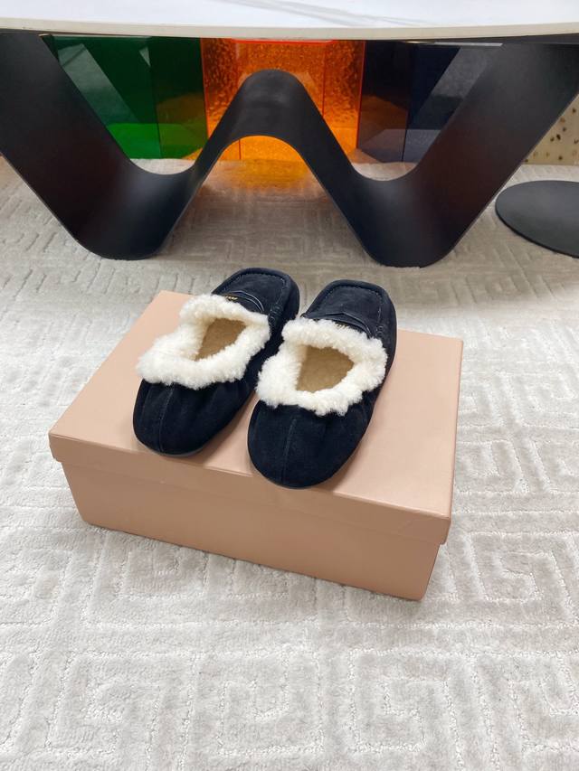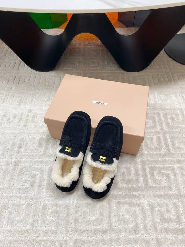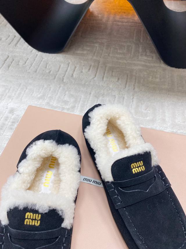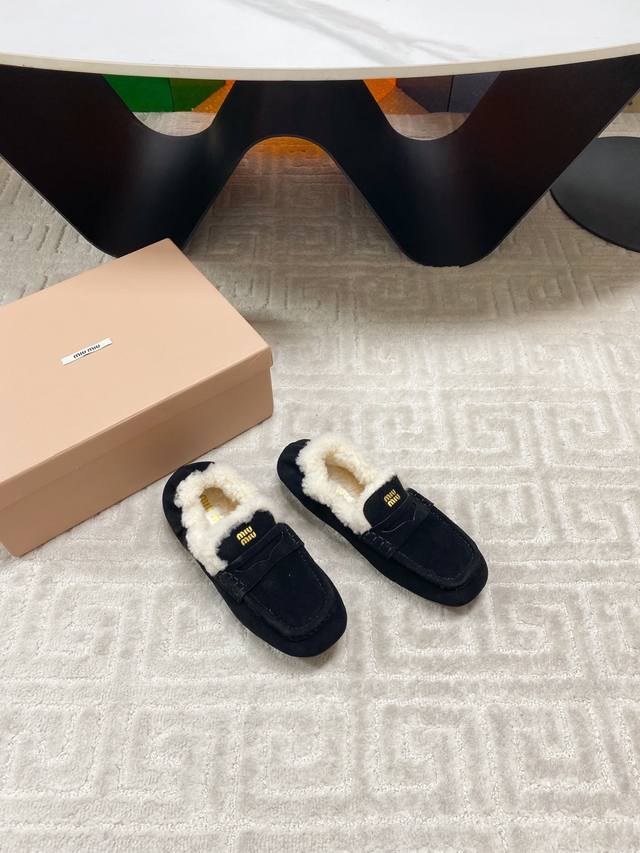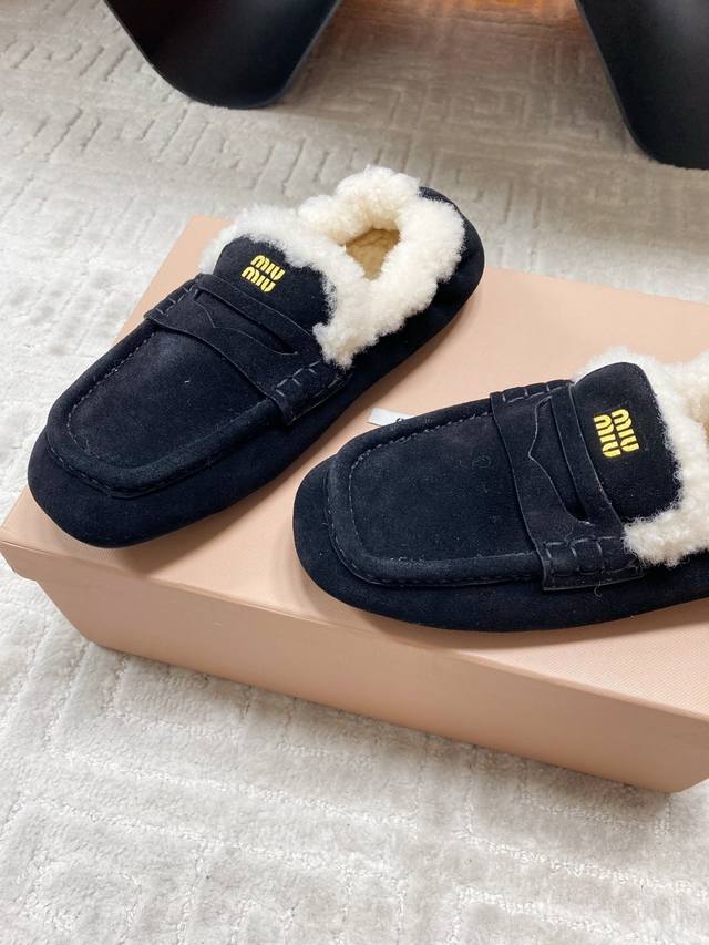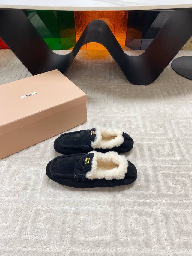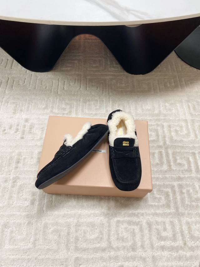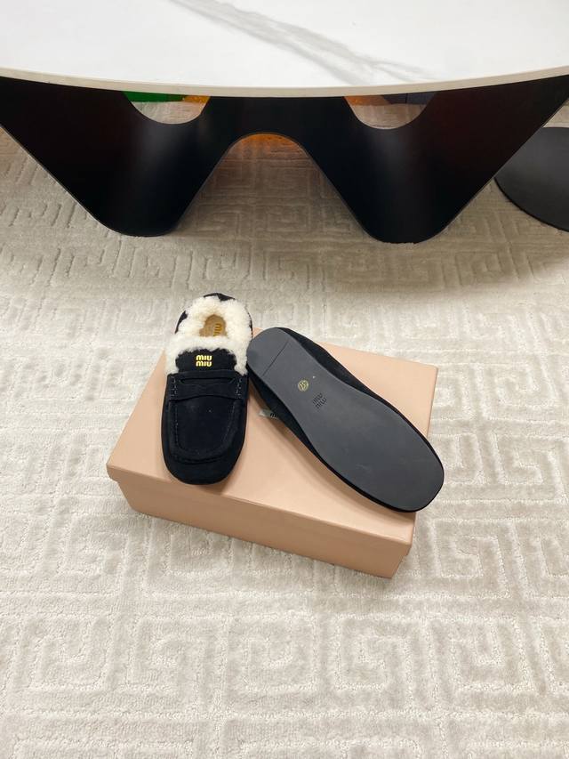 出厂 Miumiu 缪缪2025Ss秋冬走秀款一脚蹬驾车鞋加毛乐福鞋毛毛鞋