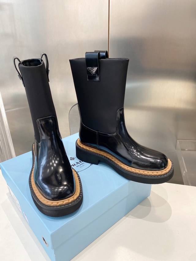 / 出厂 Prada普拉达经典三角标一脚蹬王炸女靴 冬天买不到的系列,绝对是今年的大爆款!!贼好看!Prada靴子真的很哇塞!上脚大气显腿瘦气质这块刚好拿捏,全系列