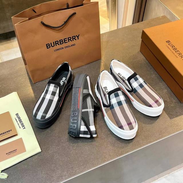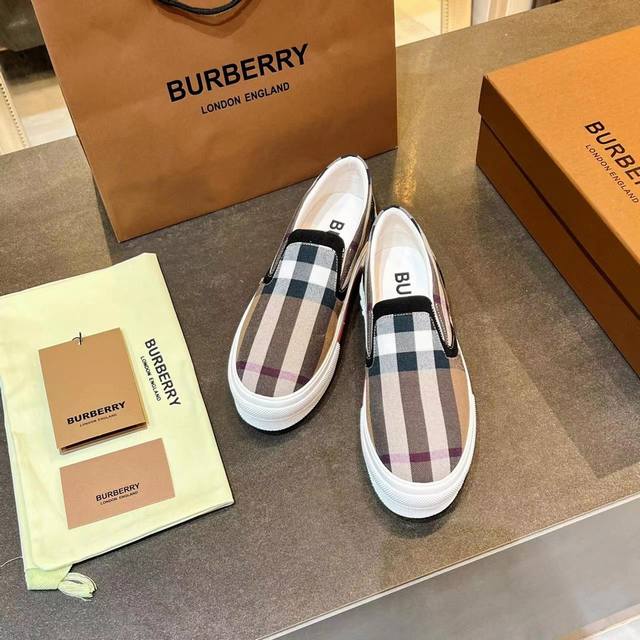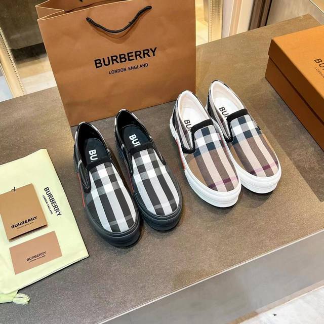 升级板乐福鞋,巴宝莉专柜同步,套穿式运动鞋,精选 Vintage 复古格纹棉与平滑皮革制成.鞋面:85%棉,15%小牛皮,内衬:100%绵羊皮;鞋底:100%橡胶 套穿式设计,鞋跟处饰有 Burberry 立体字母徽标,码数35-40.男款39-44