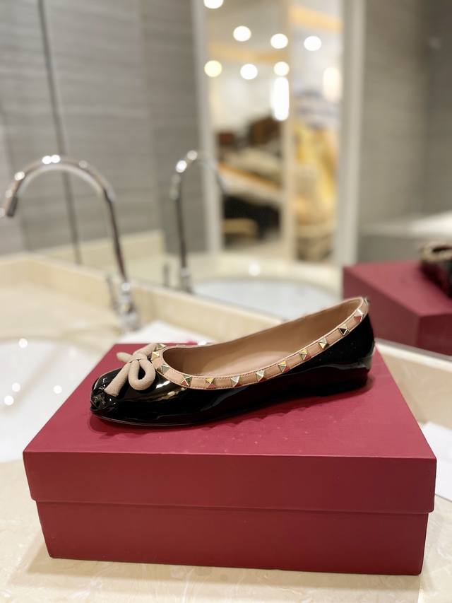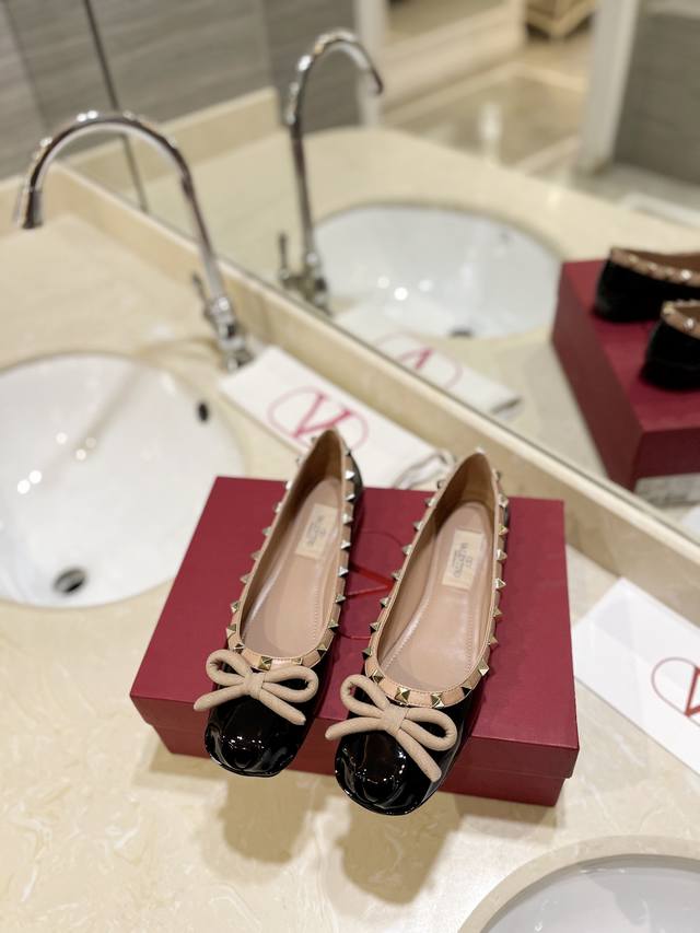 华伦天奴Valentino 最新款Valentino 芭蕾舞平底鞋 配以蝴蝶结装饰