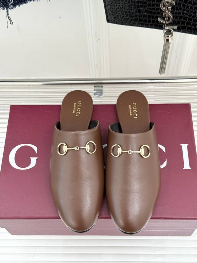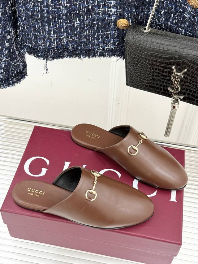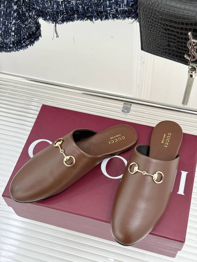 Gucci 古驰25Wf新品老花马衔扣半拖