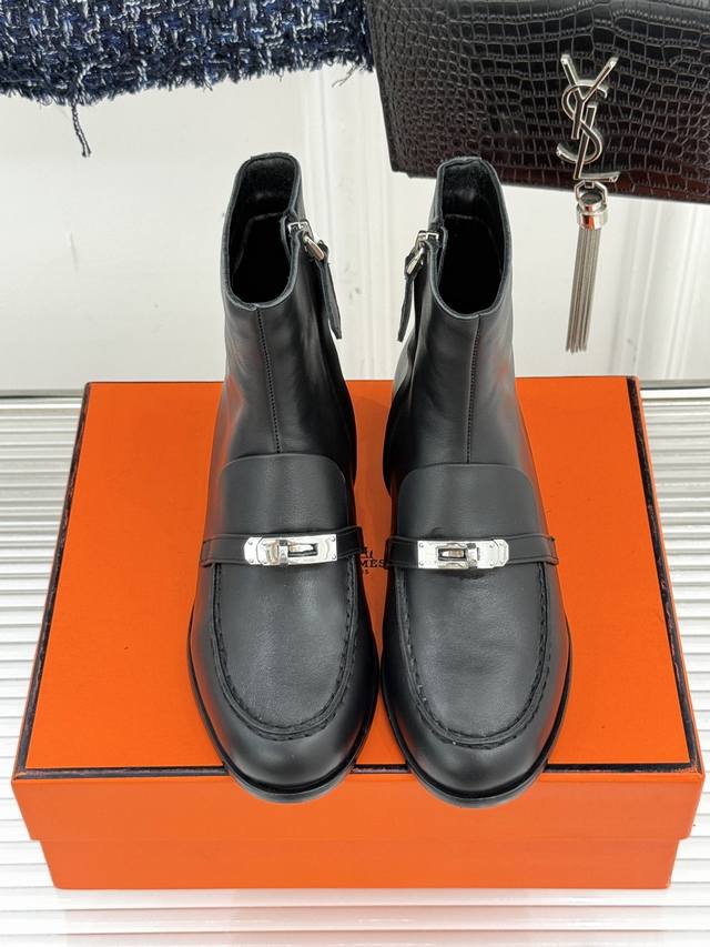 标志性Kelly扣点缀于靴面 闪耀金属光泽