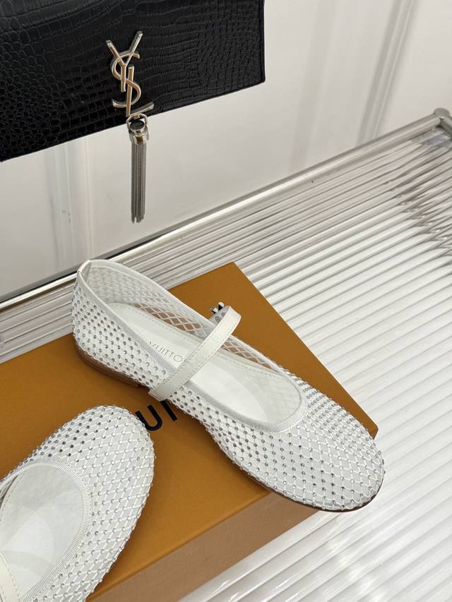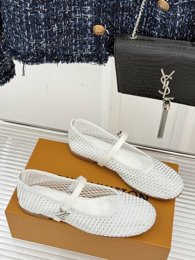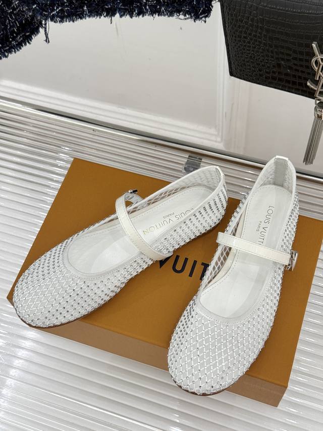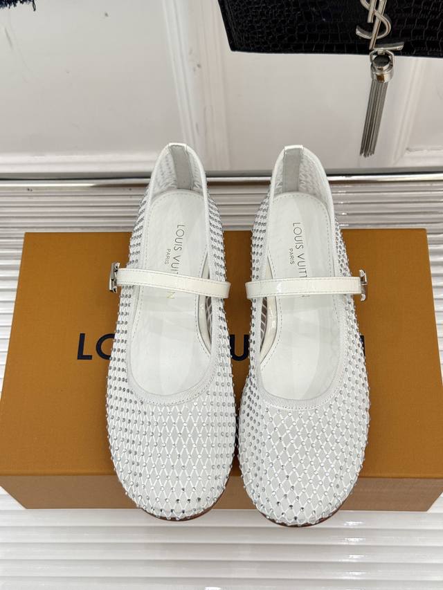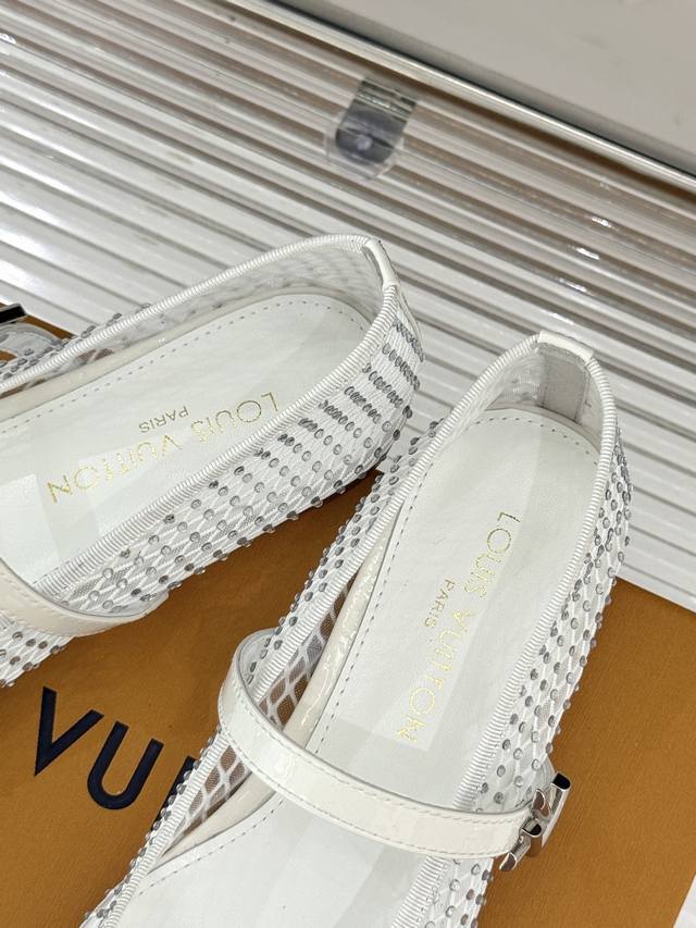 L*V驴牌25Ss春夏新品网纱烫钻玛丽珍鞋