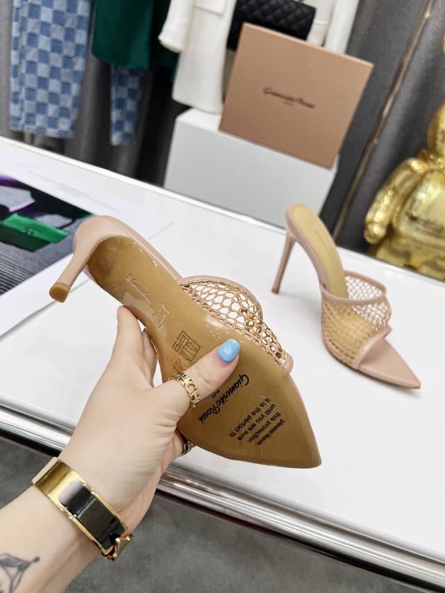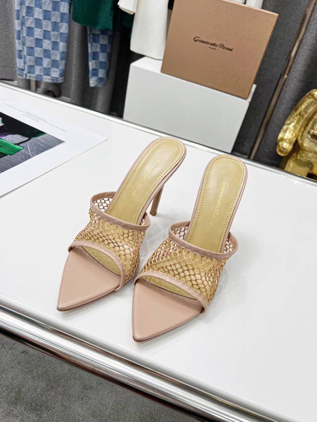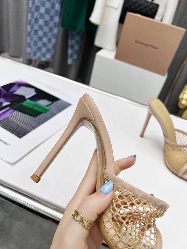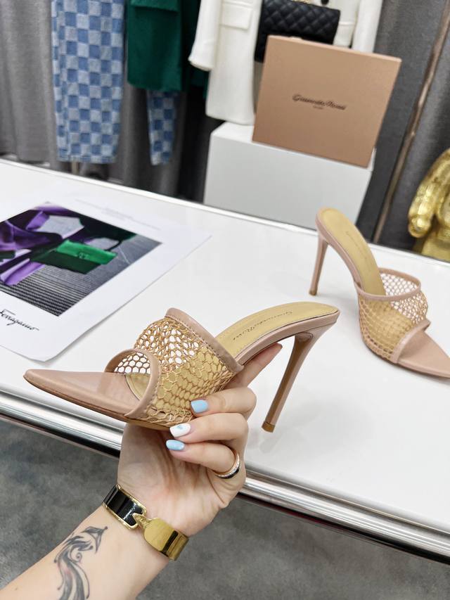 Alisa Mule,露趾凉鞋,适合任何场合。这款 105 毫米鞋跟款式采用最优质的材料在意大利手工制作,采用极为精致的透明图案制成。