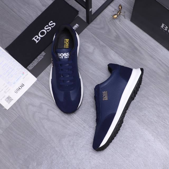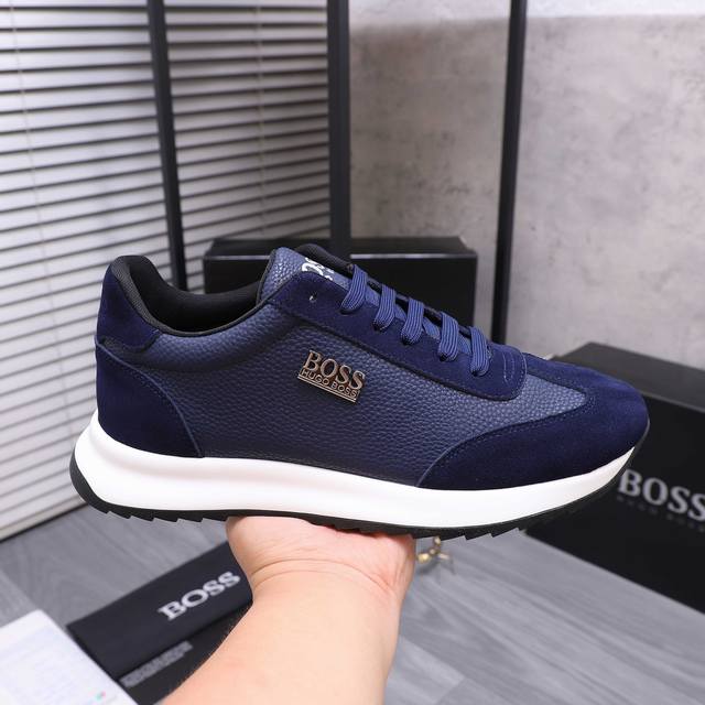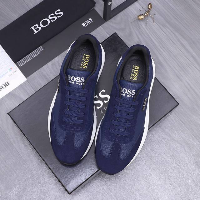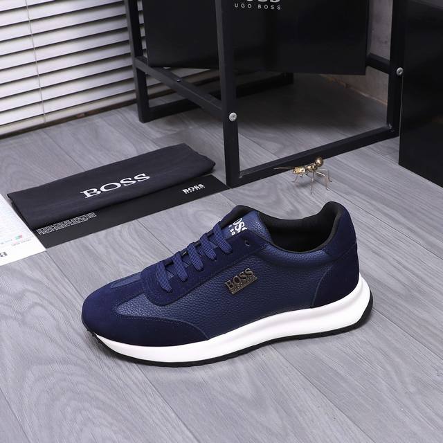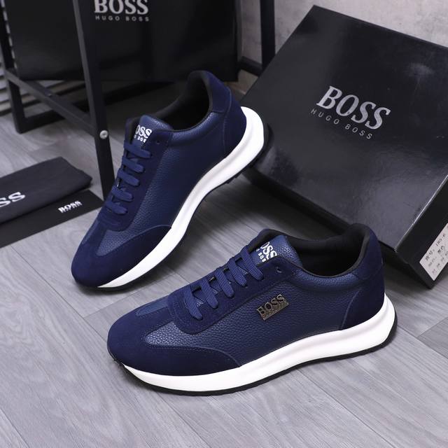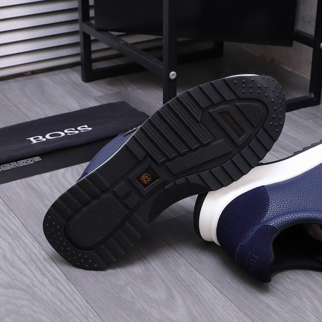 商品商标:Boss 休闲男鞋 正码码数: 38-45 45.定做不退换 商品材料:精选磨砂牛皮拼接荔纹牛皮鞋面 网内里 牛皮鞋垫 橡胶大底