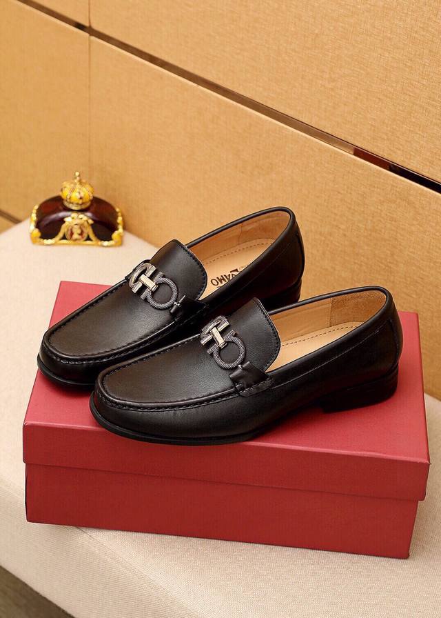 商品商标:Ferragamo 菲拉格慕 休闲皮鞋 正码码数: 38-44 45订制 商品材料:精选 进口头层小牛皮鞋面+奢华五金扣,进口水染牛皮内里。强烈立体视