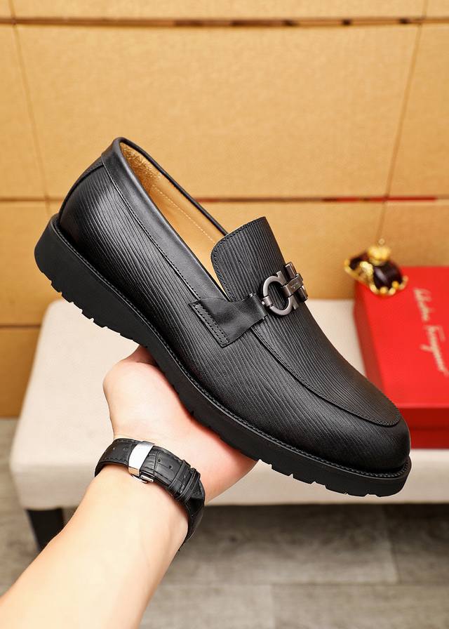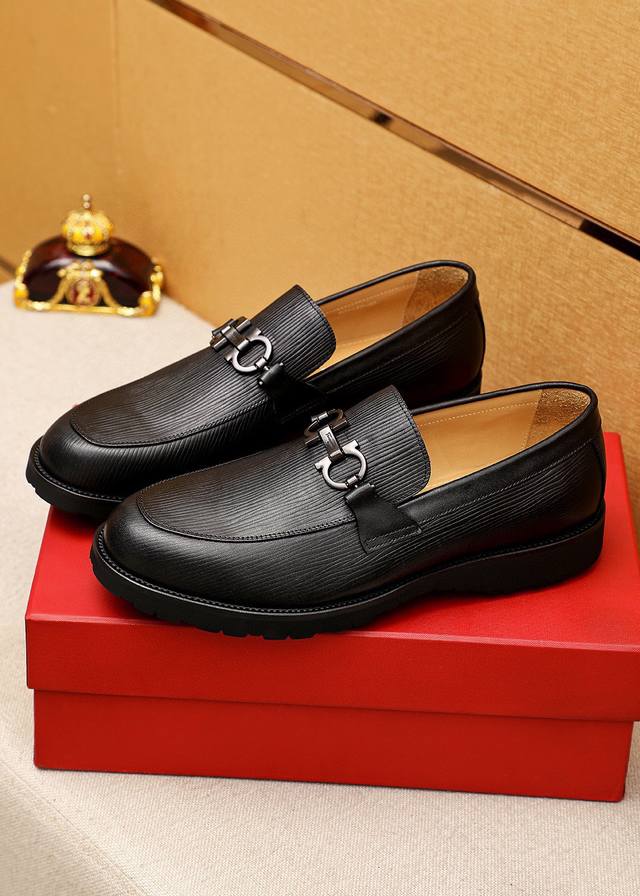 / 商品商标:Ferragamo 菲拉格慕 休闲皮鞋 正码码数: 38-44 45.46订制 商品材料:精选 进口头层小牛皮圧花鞋面+奢华五金扣,进口水染牛皮内里。