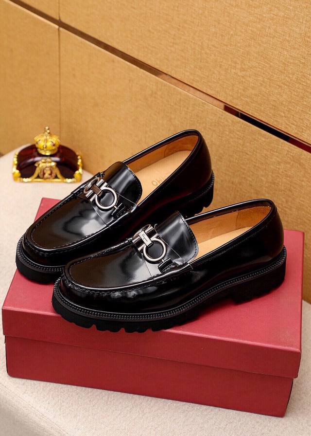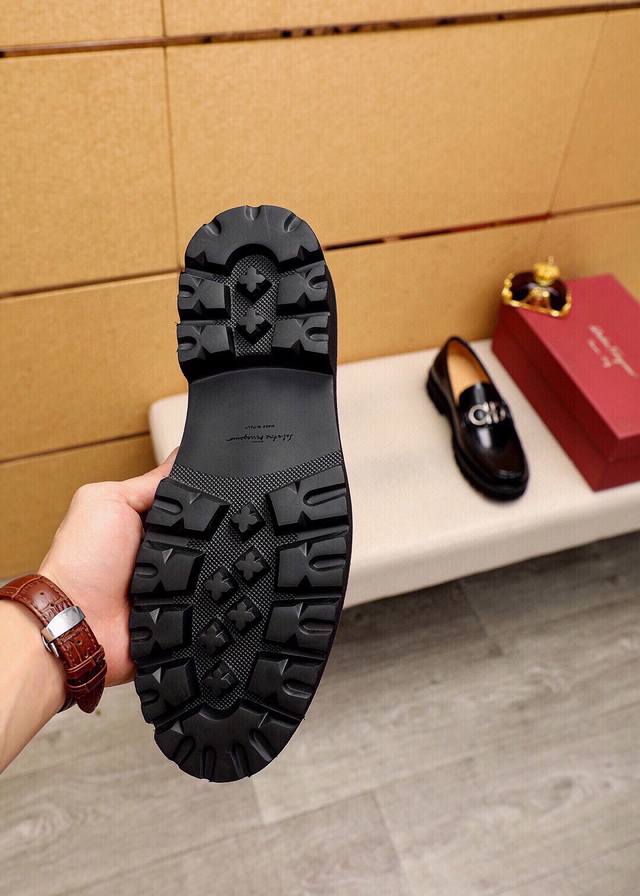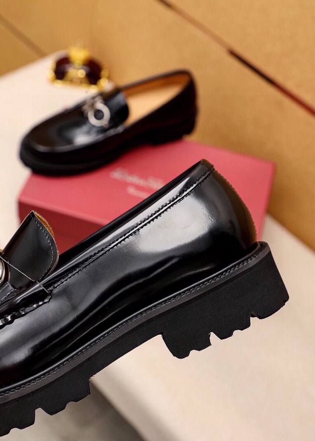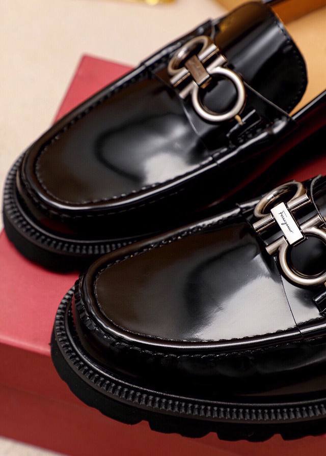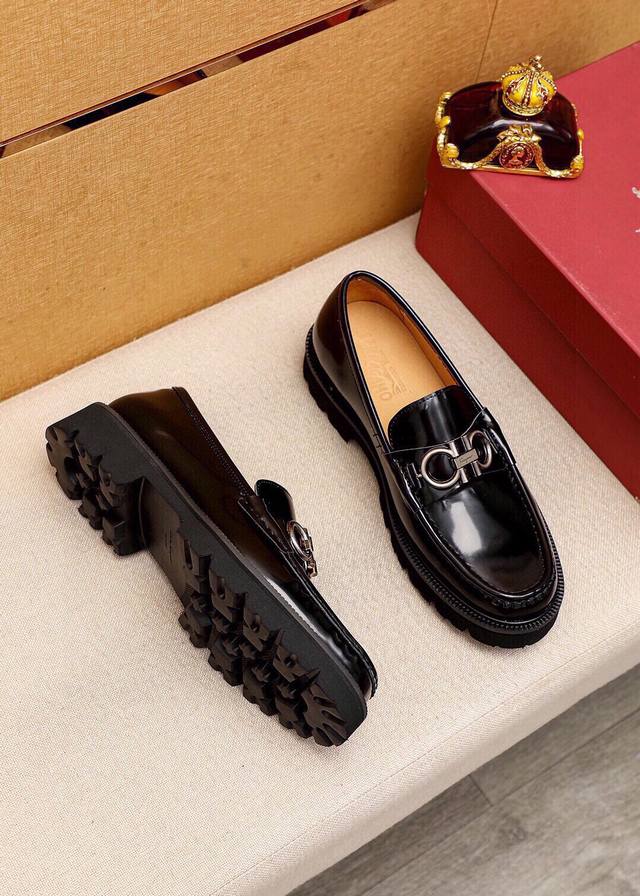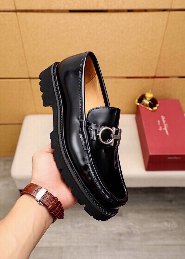 商品商标:Ferragamo 菲拉格慕 休闲皮鞋 正码码数: 38-44 45.46订制 商品材料:精选 进口头层开边珠牛皮鞋面+奢华五金扣,进口水染牛皮内里。