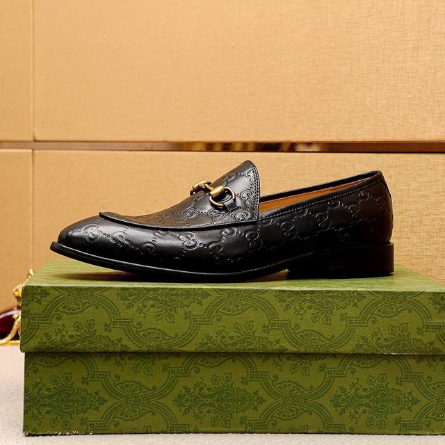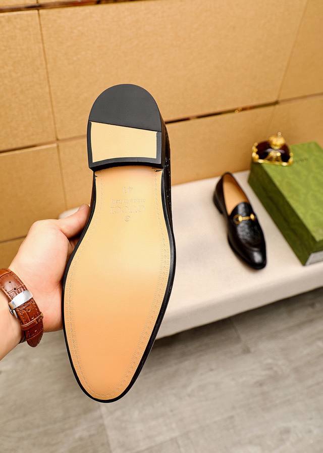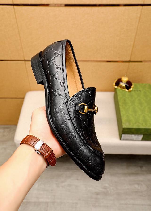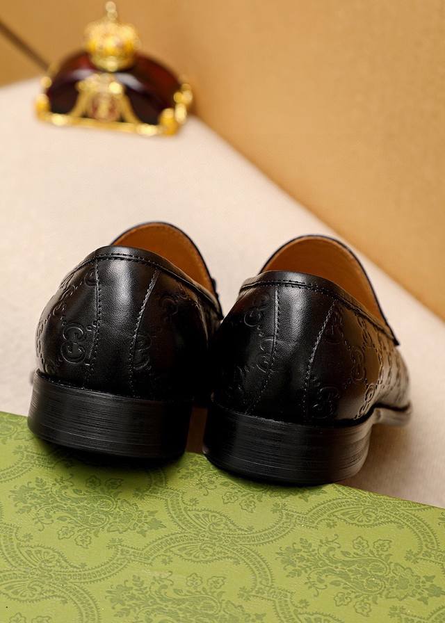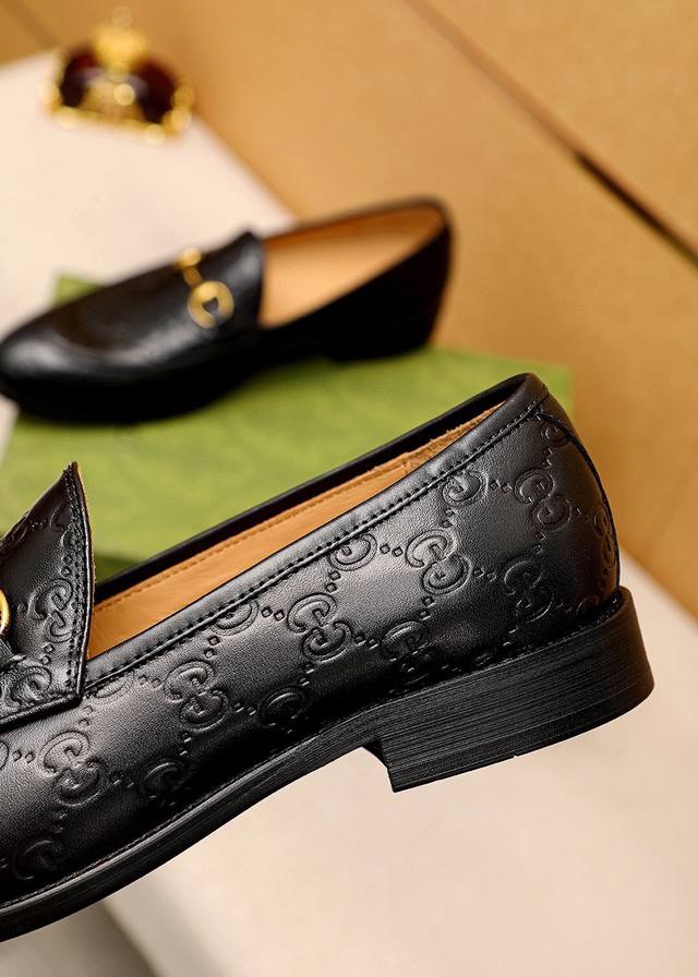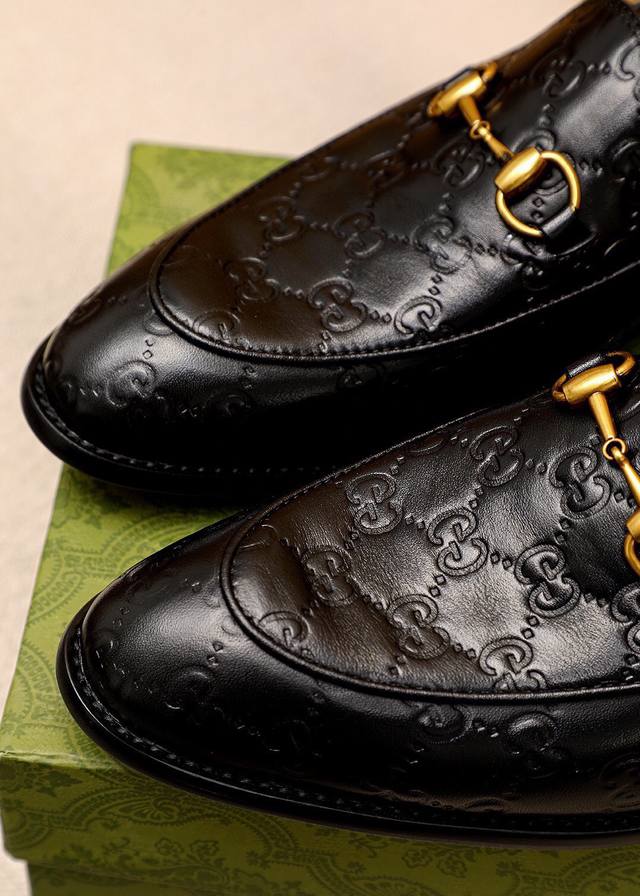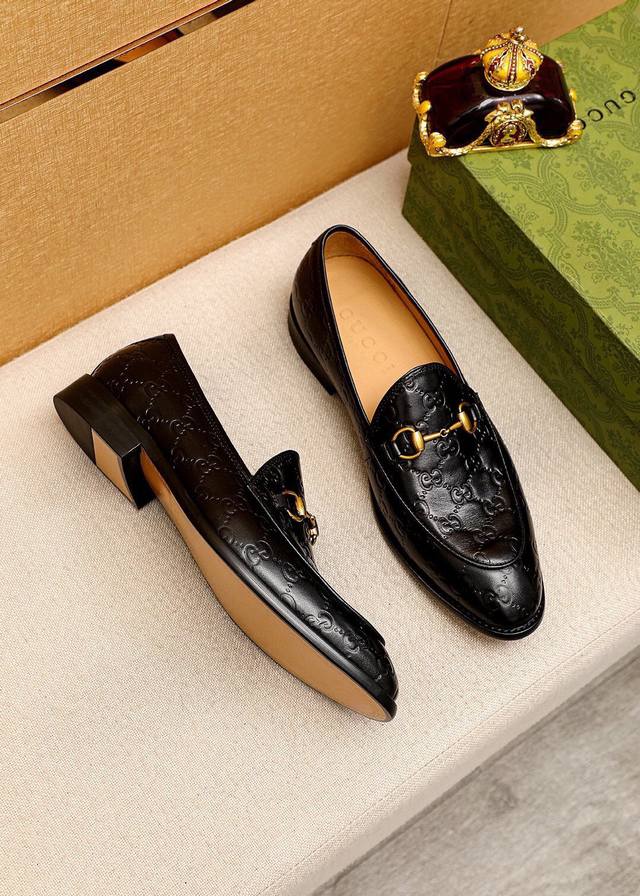 / 商品商标:Gucci 古驰 休闲皮鞋 正码码数: 39-44 38.45.46订制 商品材料:精选 进口头层小牛皮压花鞋面+原版五金扣,进口牛皮内里。强烈立体视