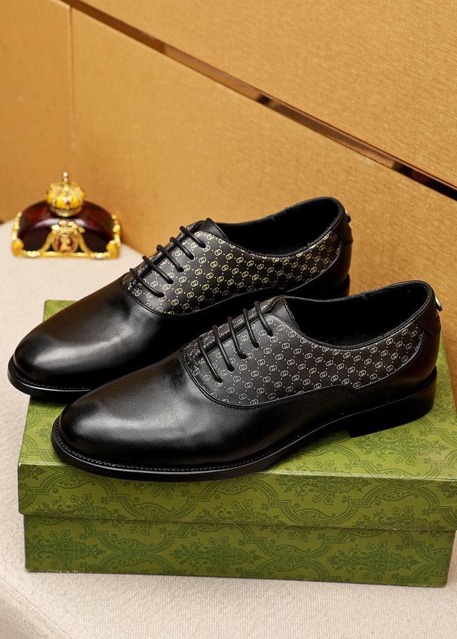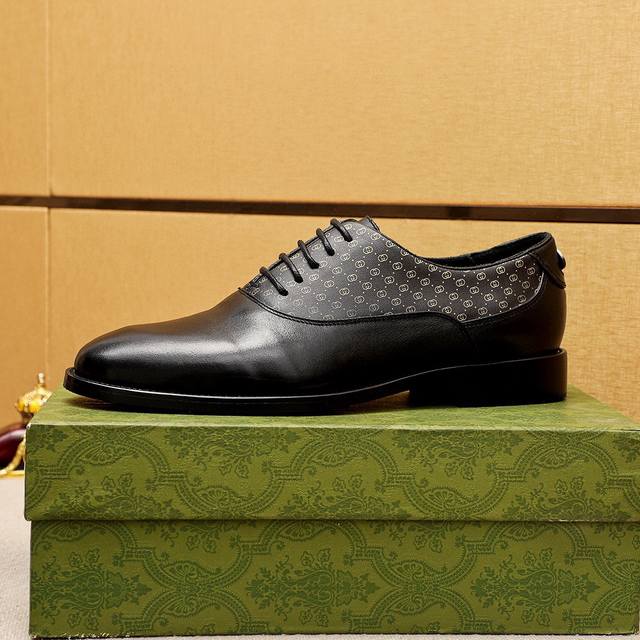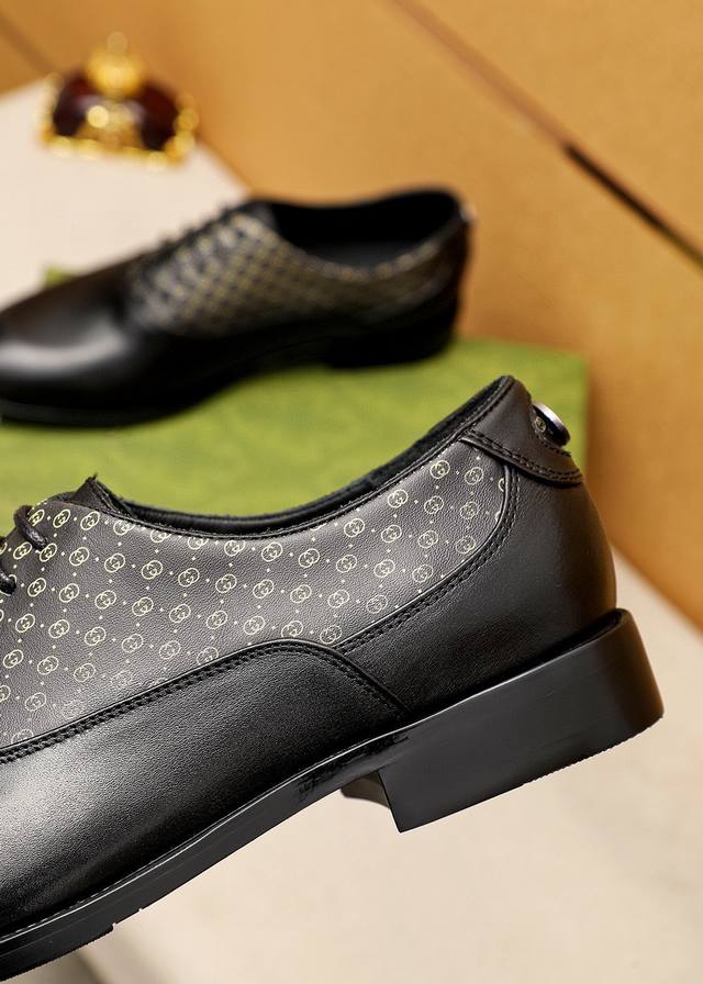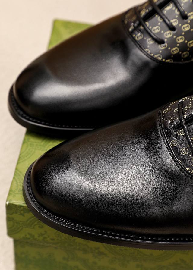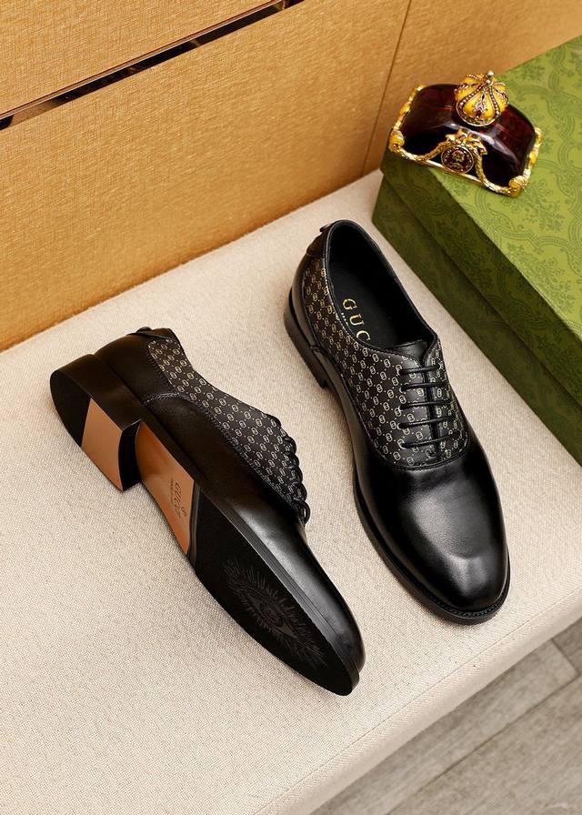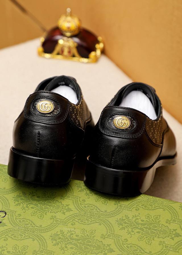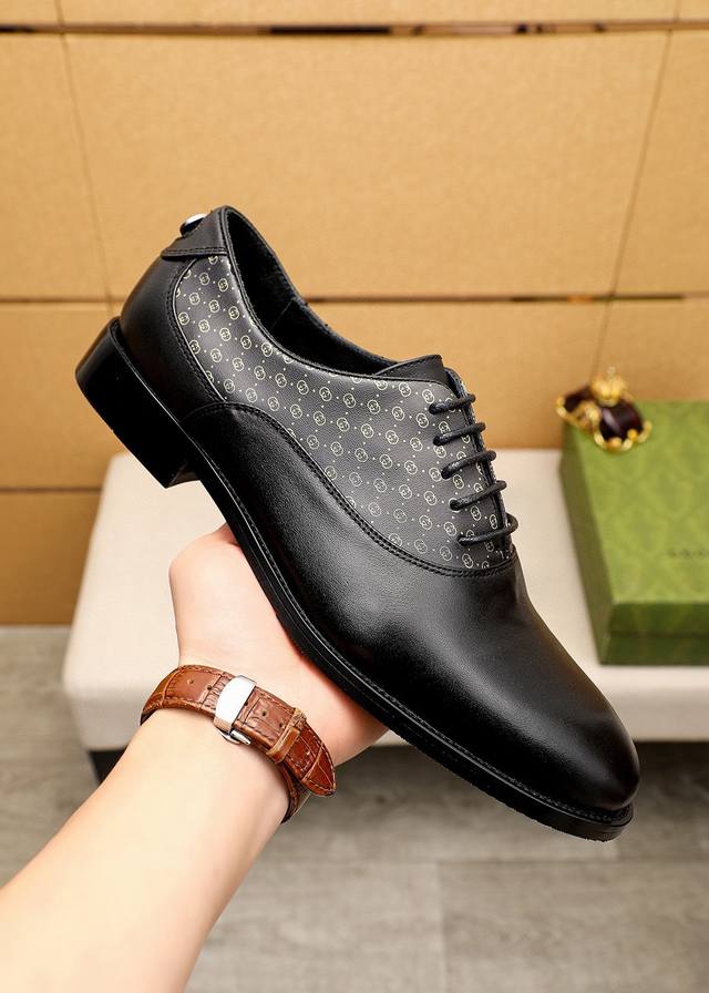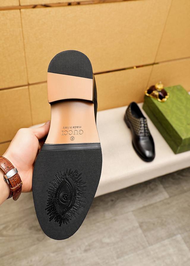 / 商品商标:Gucci 古驰 商务皮鞋 正码码数: 38-44 45.46订制 商品材料:精选 进口头层小牛皮鞋面,进口水染牛皮内里。强烈立体视觉效果,组合大底