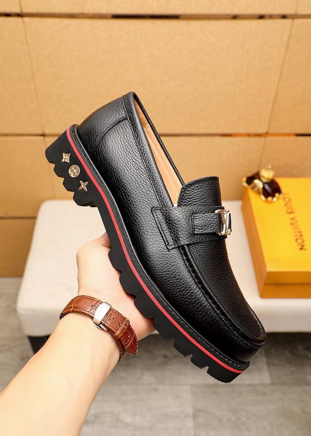 / 商品商标:Louis Vuitton 路易威登 休闲皮鞋 正码码数: 38-44 45.46订制 商品材料:精选 进口头层荔枝纹牛皮鞋面+奢华五金扣,进口头层牛