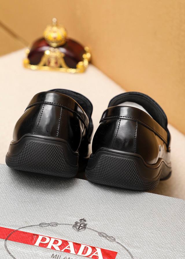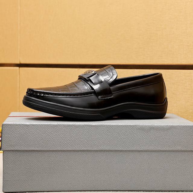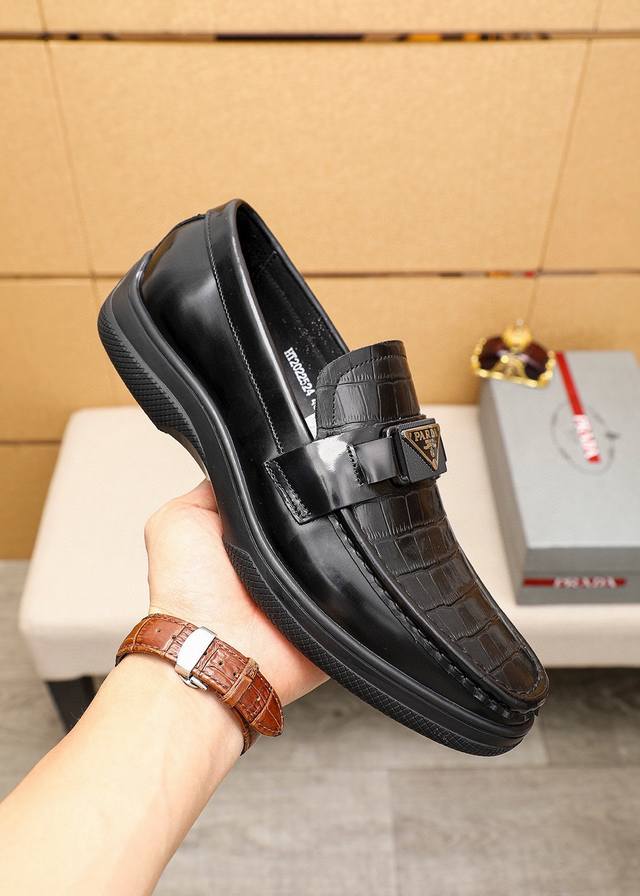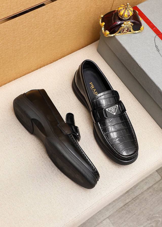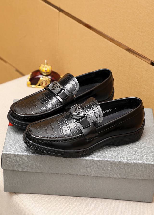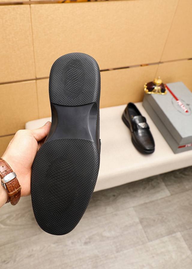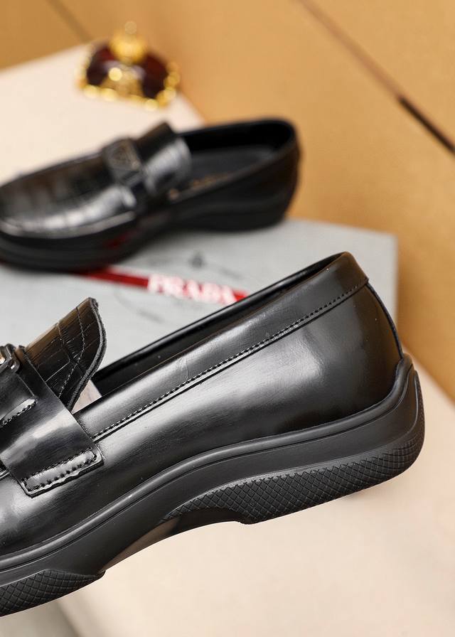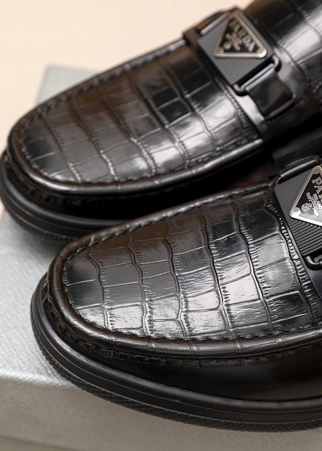 / 商品商标:Prada 普拉达 休闲皮鞋 正码码数: 38-44 45订制 商品材料:精选 进口头层小牛皮压花鞋面+原版五金扣,进口水染牛皮内里。强烈立体视觉效果