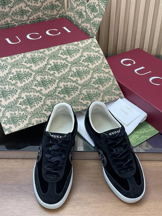 女款 2025早秋Gucci G75系列互扣式G G金丝天鹅绒 女士德训鞋女款顶级代购级别