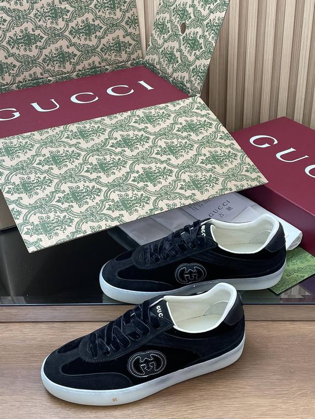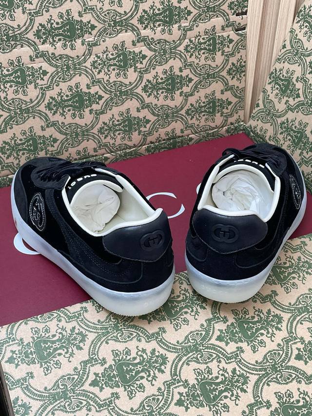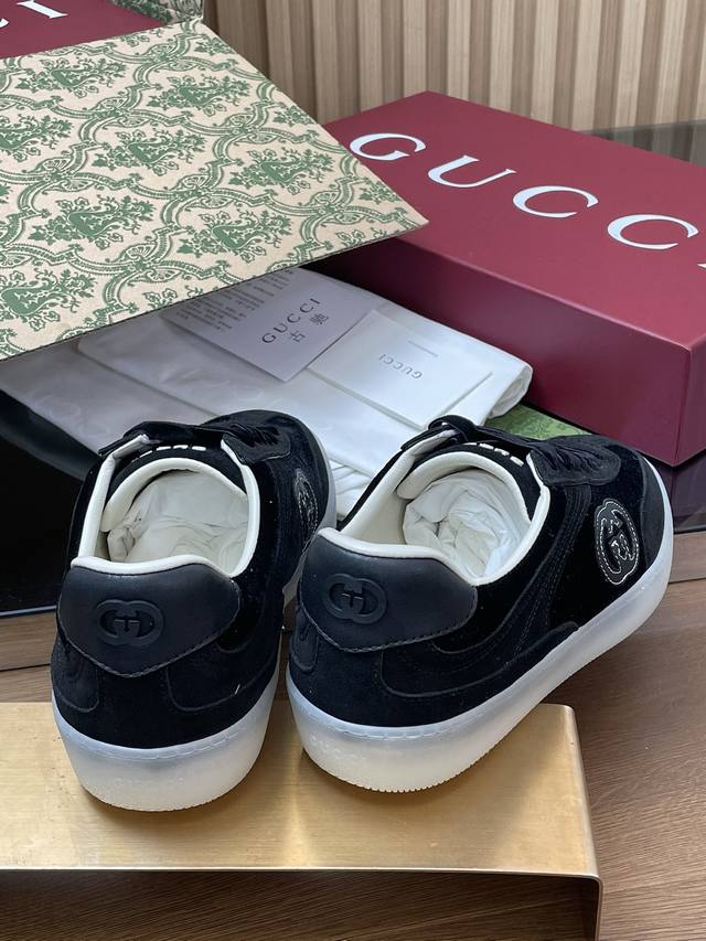 这款全新德训鞋小白鞋灵感源自意大利传奇海岸线上迷人的海滨俱乐部,传递海滨生活的醉人魅力。这款运动鞋以绒面材质匠心打造,缀饰互扣式双G G标识等经典符号元素,尽显别样风采