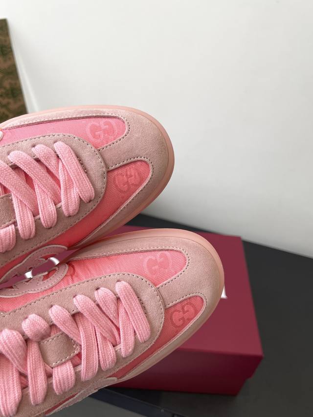 这双鞋由柔软的麂皮制成 散发出精致而现代的魅力 经典的Interlocking G标志优雅地突显了流线型版型 为设计增添精致的触感