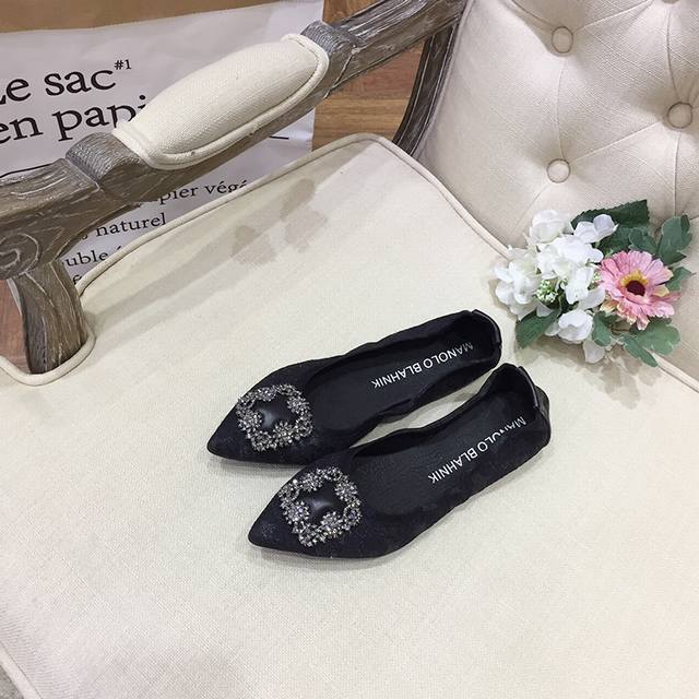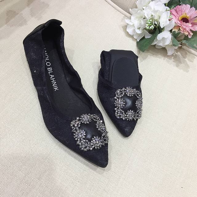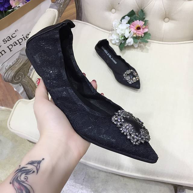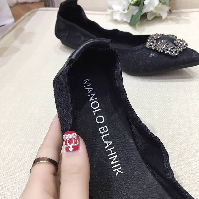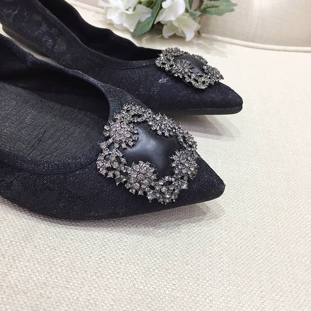 Manolo Blahnik Mb同款升级蕾丝皮面款 顶级版本用更完美的品质重新演绎Mb雪花扣的经典!法国进口环保顶级绵羊皮、超级完美!更好品质!其永恒经典的象征 面料柔软绵羊皮字加上原版五金水钻,上脚真的很舒适 造型精致,你能抵制她的诱惑吗!可以折起来的时尚跳舞鞋,你值得拥有!配个绑袋方便携带!车女必备 大货大卖 黑色绵羊皮拼接蕾丝,杏色绵羊皮拼接蕾丝2 色入 ---码数:35-40 41 可定做