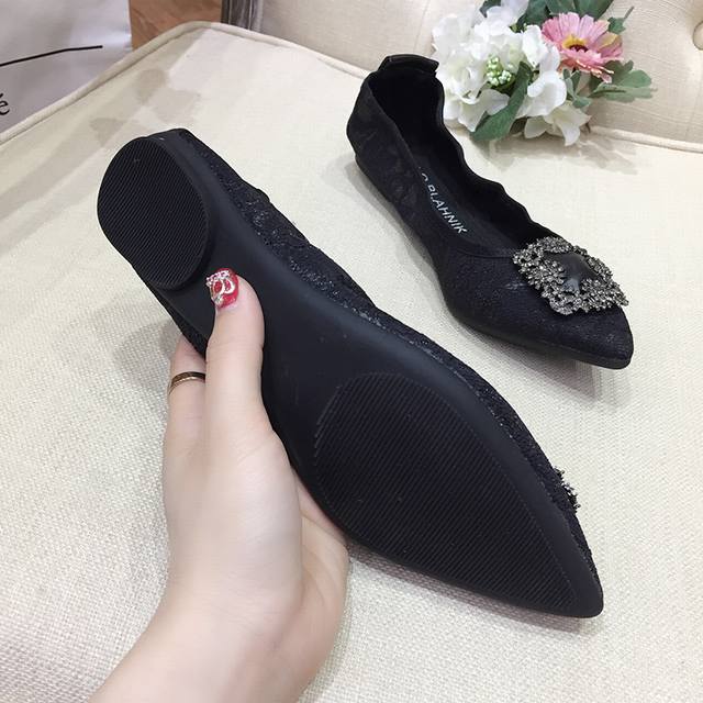 女装女鞋 运动原单 Manolo Blahnik Mb同款升级蕾丝皮面款 顶级版本用更完美的品质重新演绎Mb雪花扣的经典!法国进口环保顶级绵羊皮、超级完美!更好