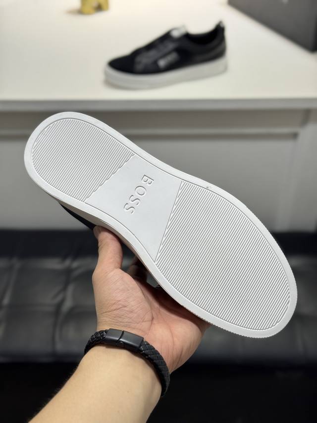 实价 男士精品 Boss 休闲男鞋,以经典的一脚蹬设计,成为永不落幕的时尚宠儿,经典的休闲造型。采用牛皮压纹,两边拉链设计,内里羊里品牌专用大底,橡胶耐磨超轻大